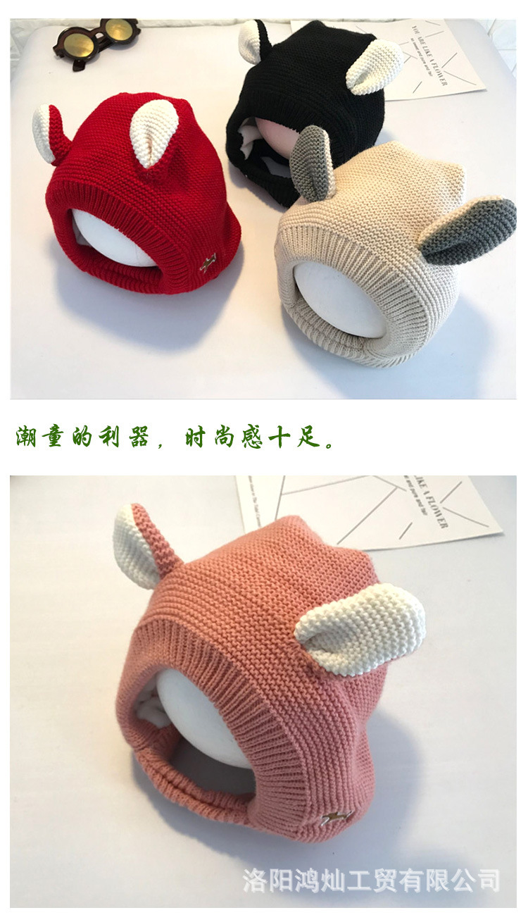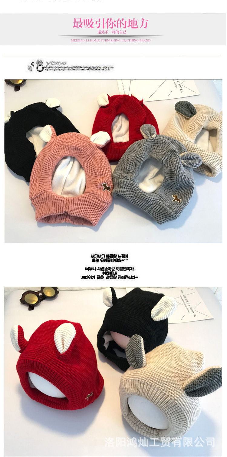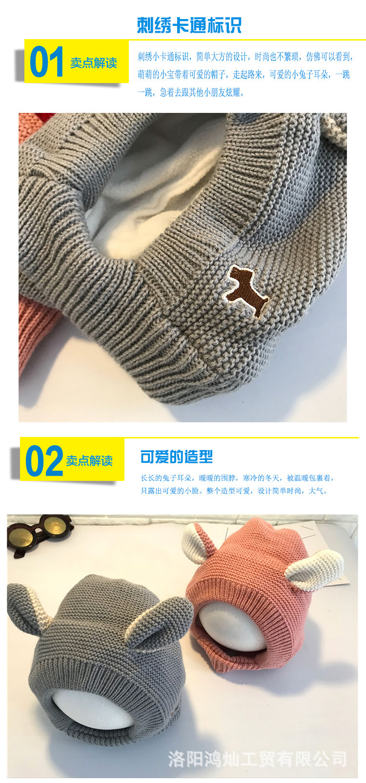 겨울 기모 두꺼운 아기 토끼 귀 보호 아기 소년과 소년의 니트 모자 귀여운 양모 모자스토어 가기