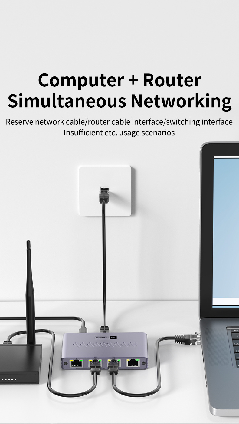 국경 간 네트워크 케이블 스플리터 1-4 기가비트 네트워크 분배기 인터넷 RJ45 네트워크 스위치 확장에 동시 액세스