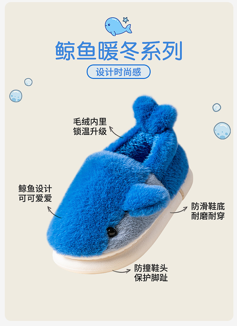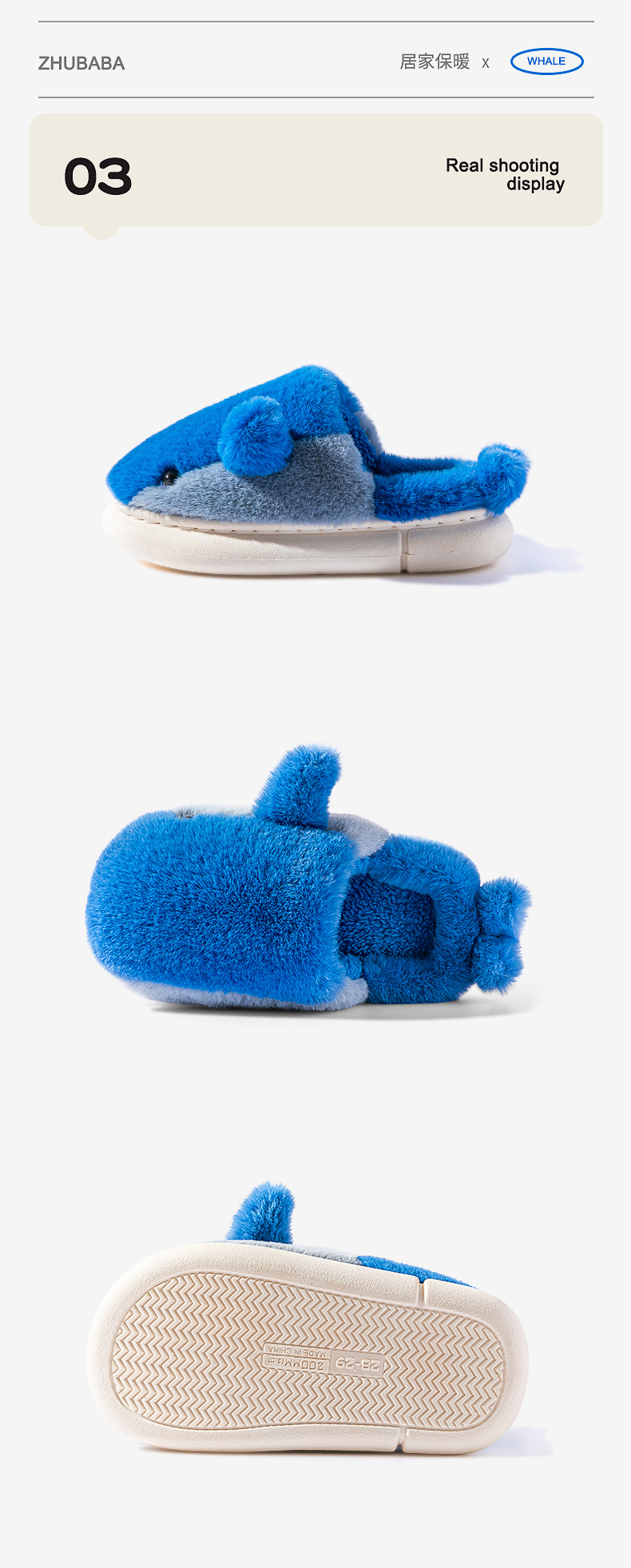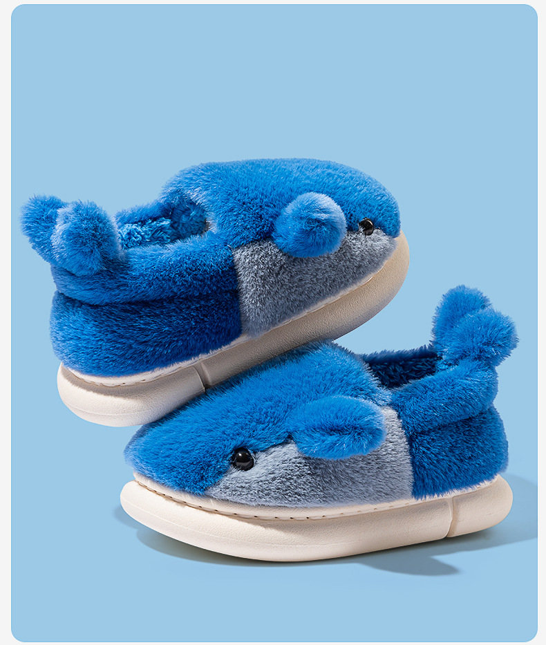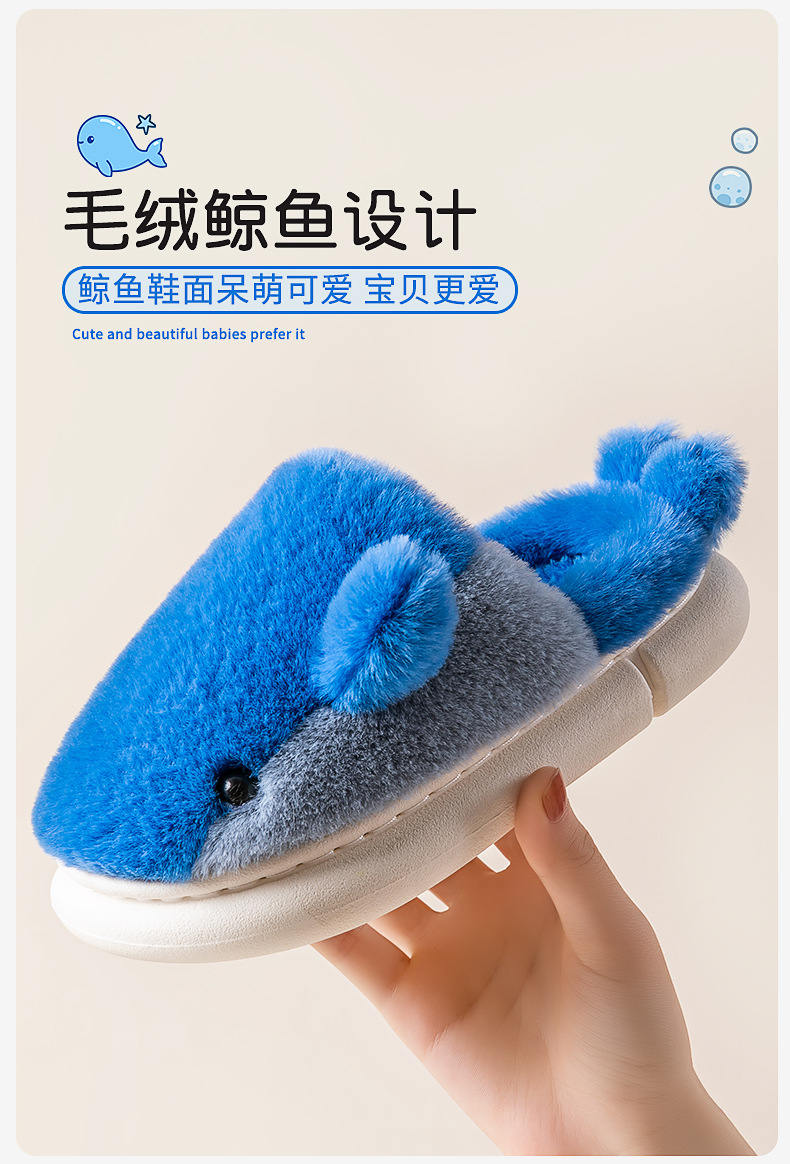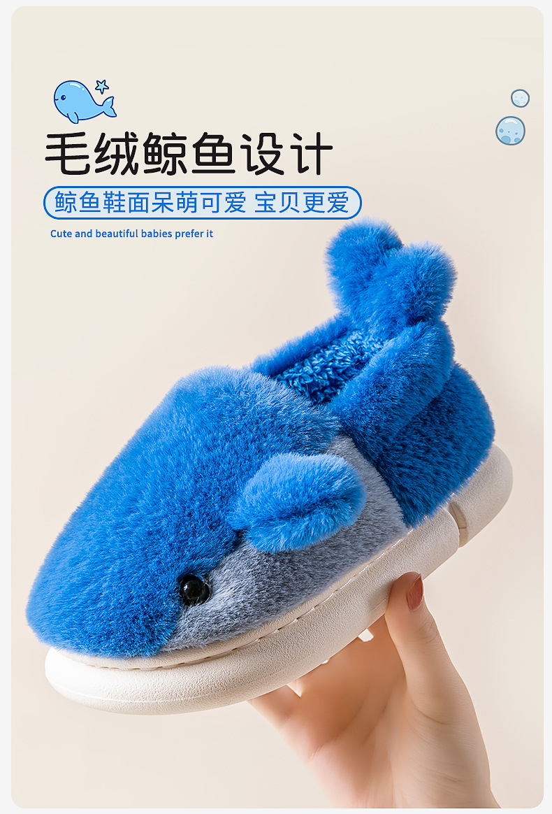 어린이 면 슬리퍼 겨울 소년과 소녀 홈 따뜻한 귀여운 만화 고래 면화 어린이 중 큰 어린이 양모 슬리퍼
