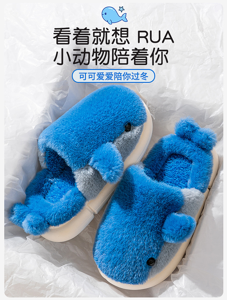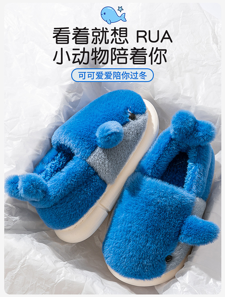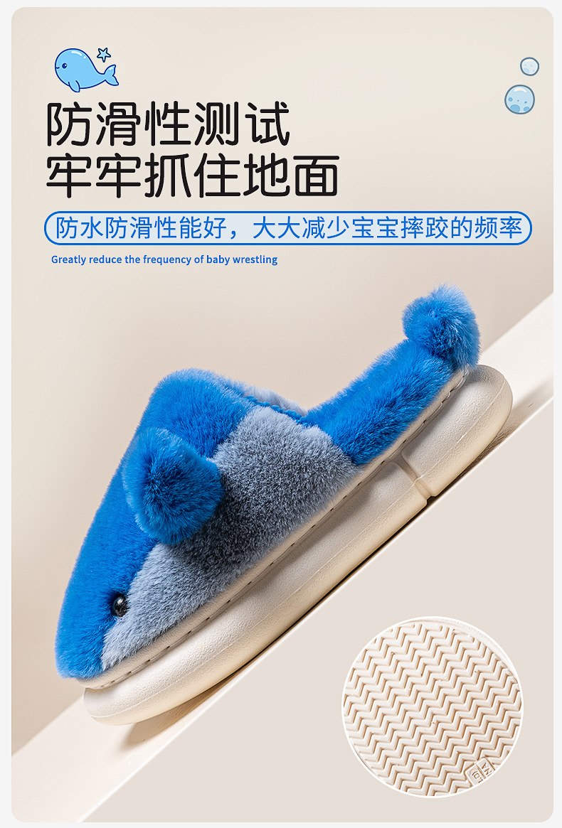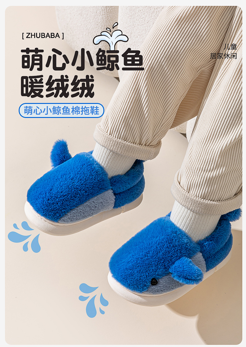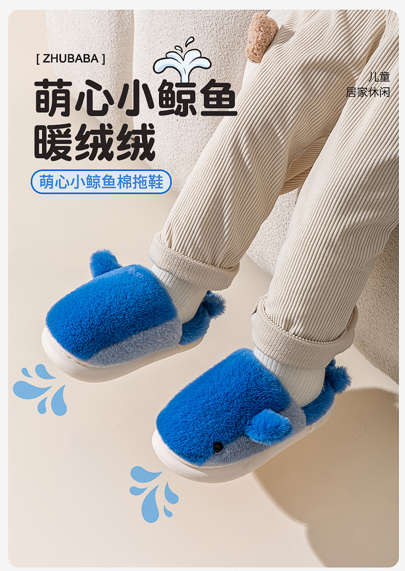 어린이 면 슬리퍼 겨울 소년과 소녀 홈 따뜻한 귀여운 만화 고래 면화 어린이 중 큰 어린이 양모 슬리퍼