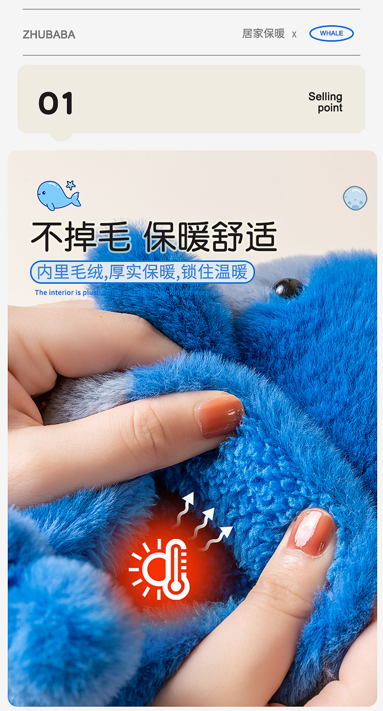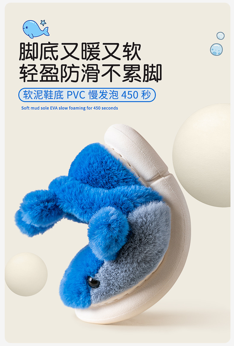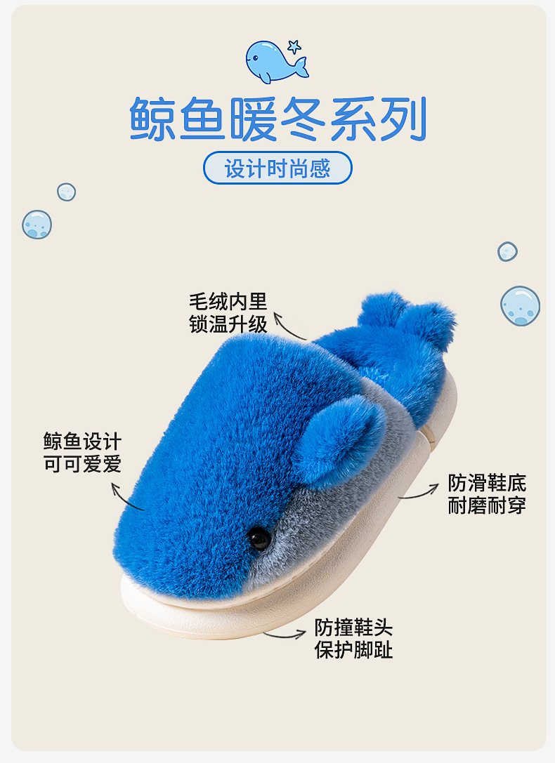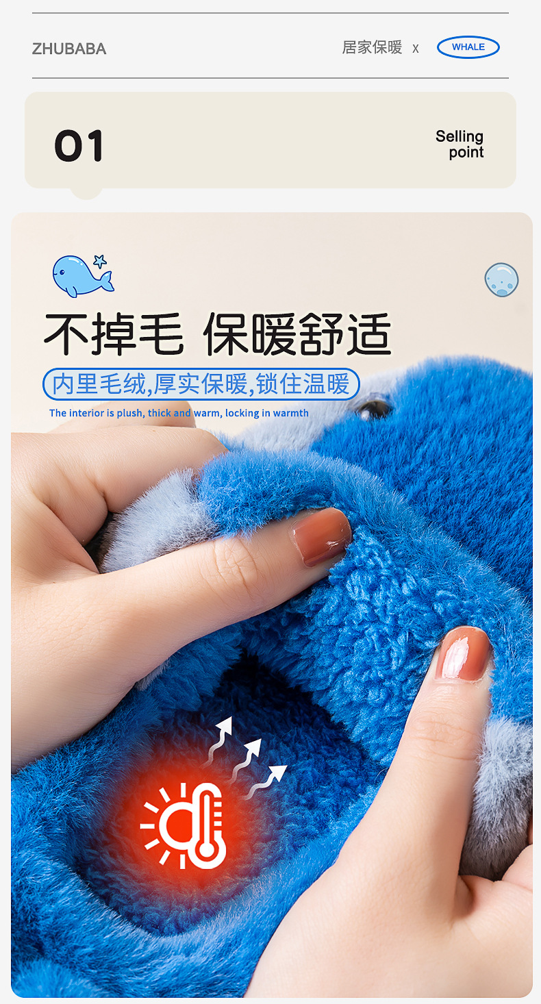 어린이 면 슬리퍼 겨울 소년과 소녀 홈 따뜻한 귀여운 만화 고래 면화 어린이 중 큰 어린이 양모 슬리퍼