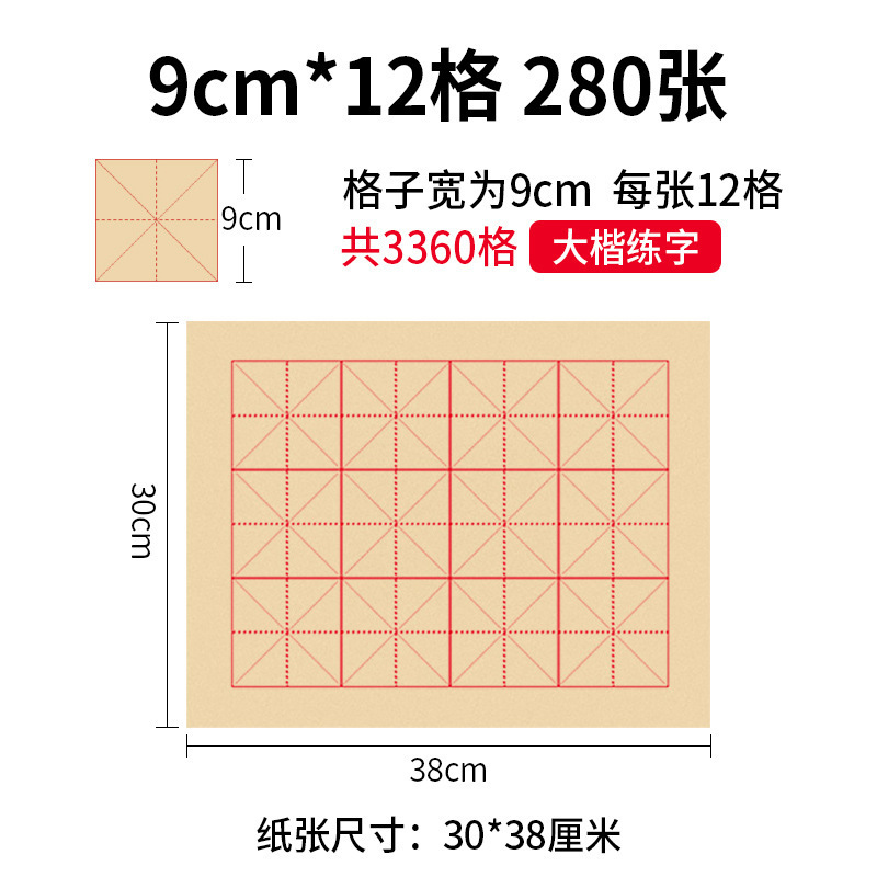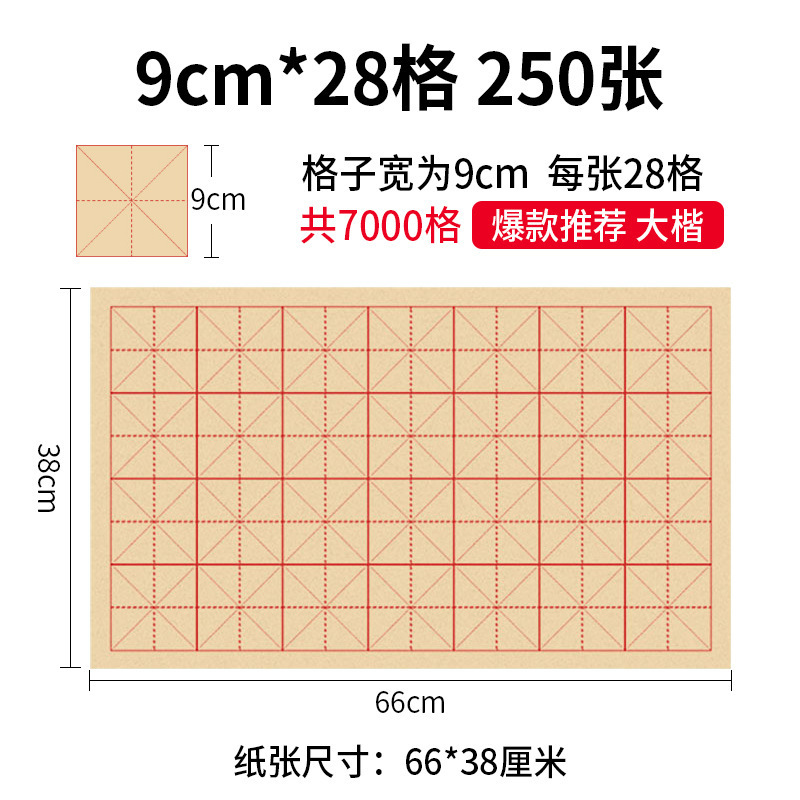 모피 가장자리 종이 반쯤 익고 반쯤 익힌 쌀 스타일 브러쉬 서예지, 격자 무늬 두꺼운 초보자