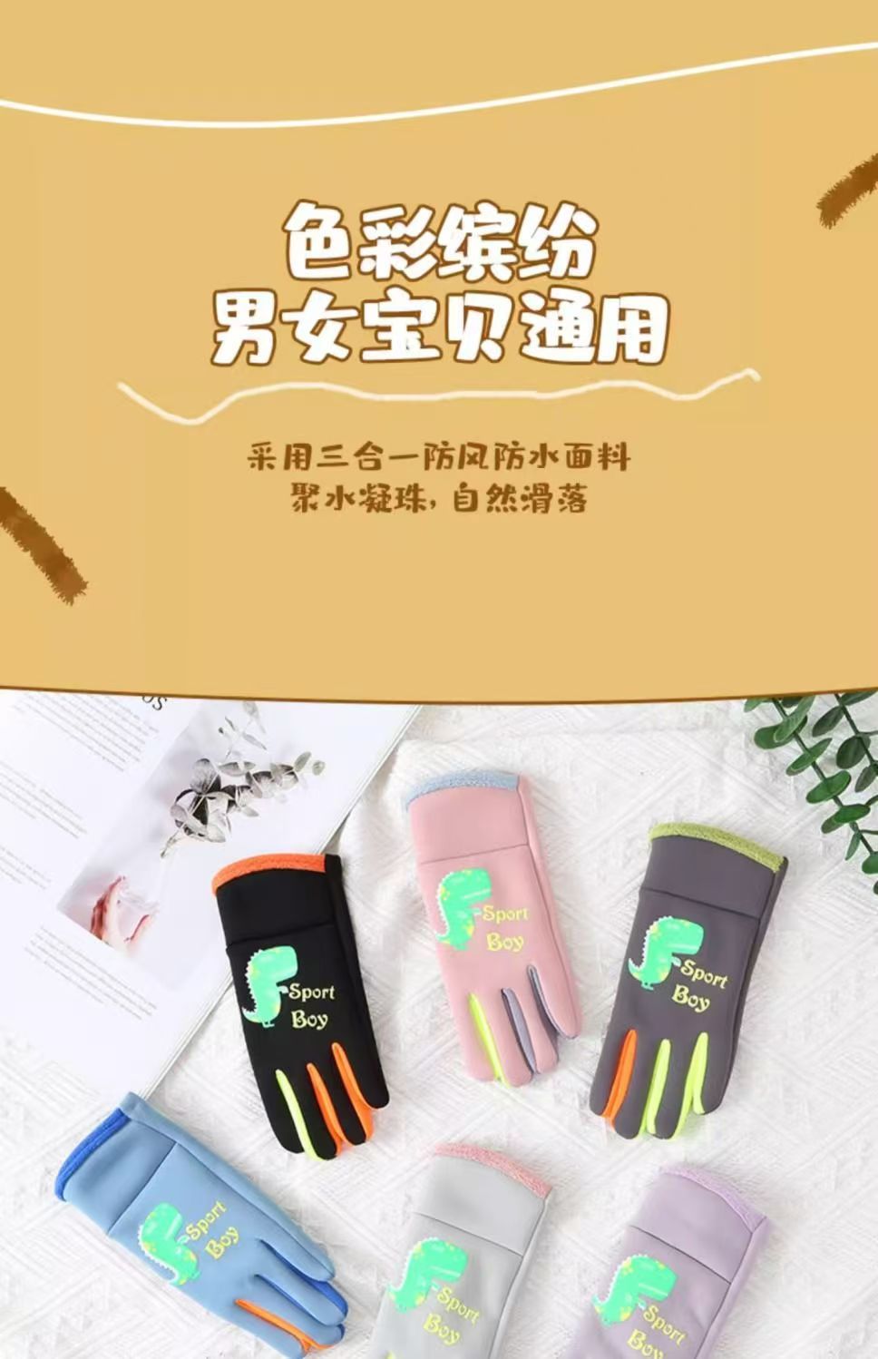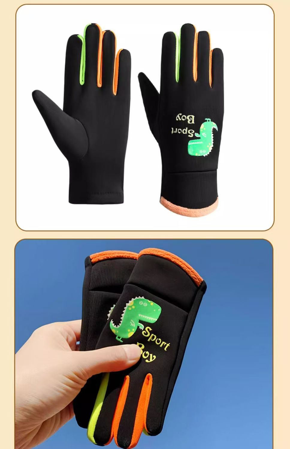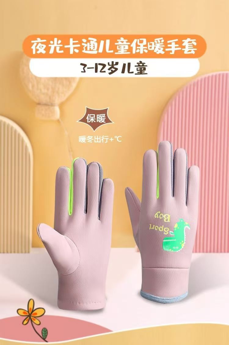 어린이 장갑 가을과 겨울 따뜻한 소년 소녀 어린이 기모 다섯 손가락 야외 승마 방풍 차가운 방수 장갑