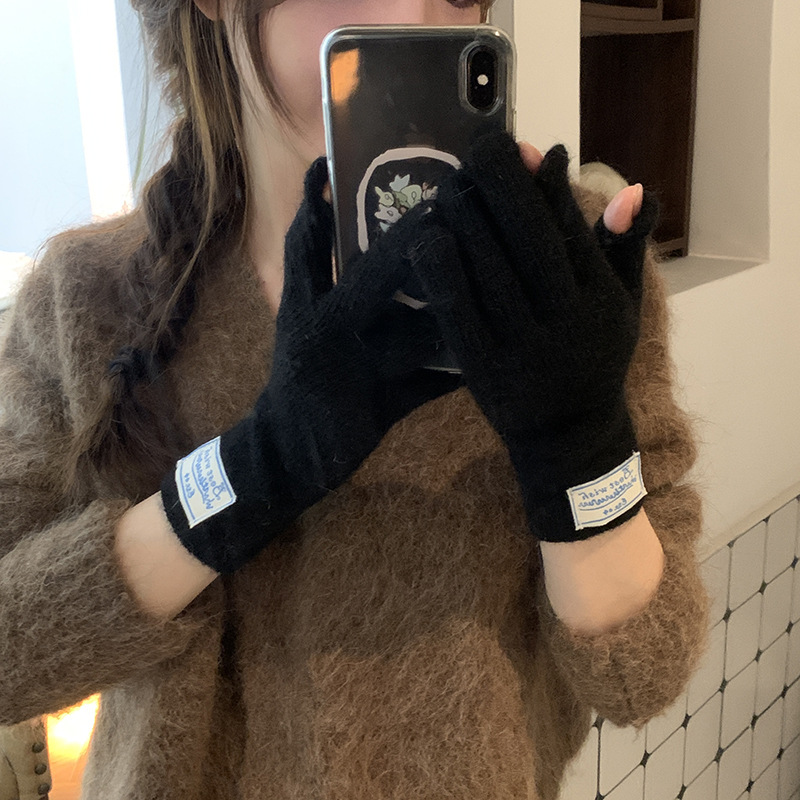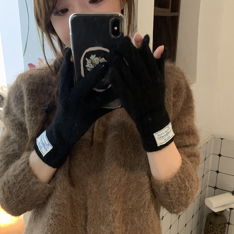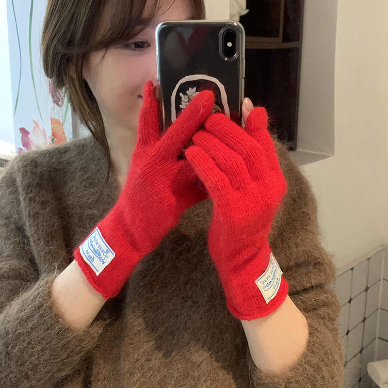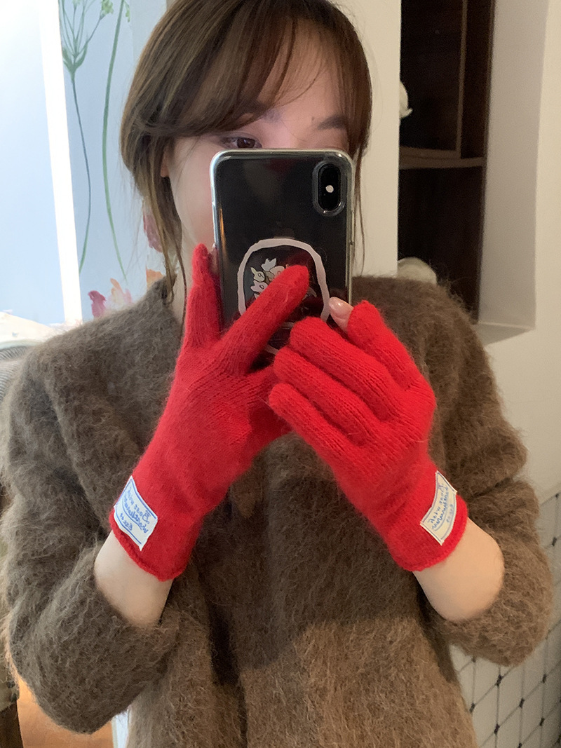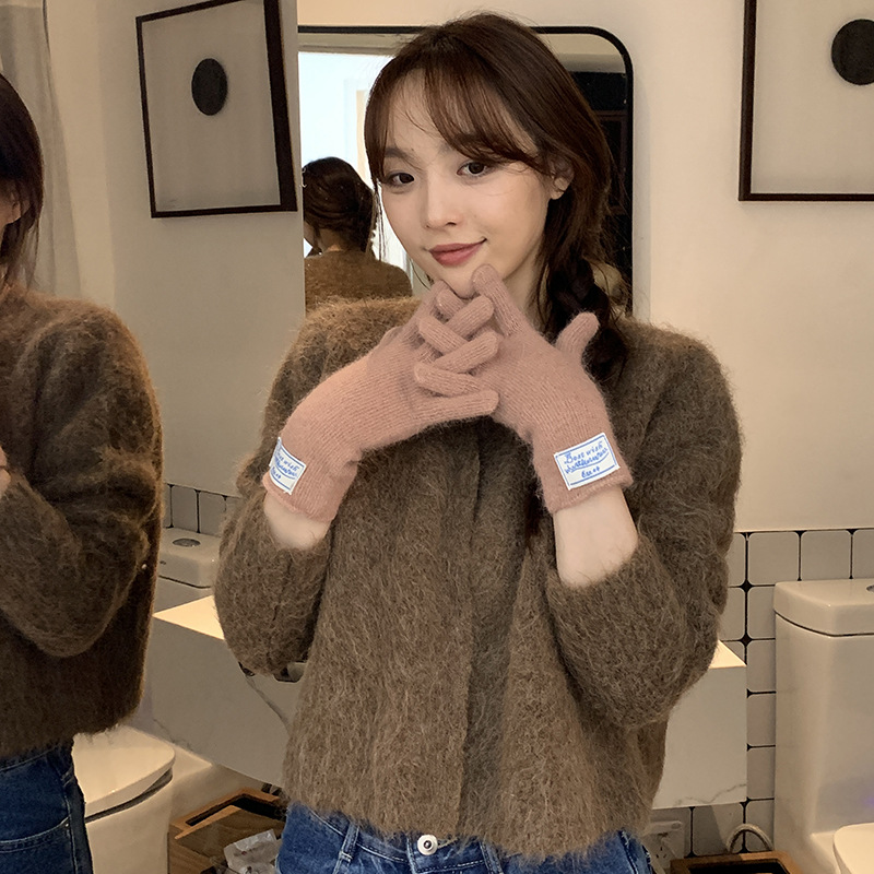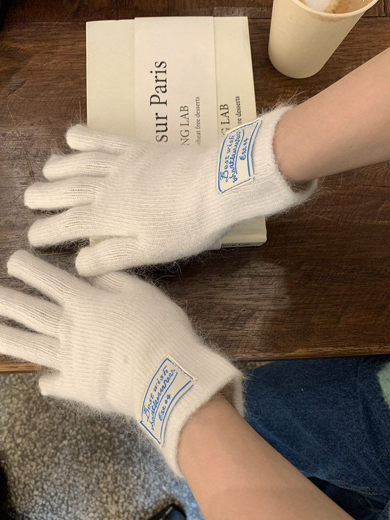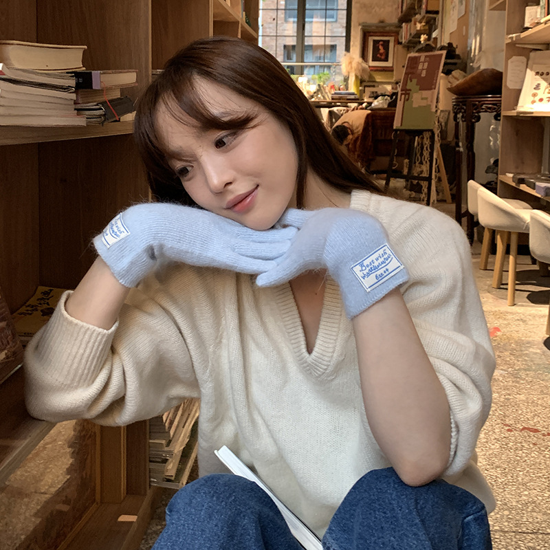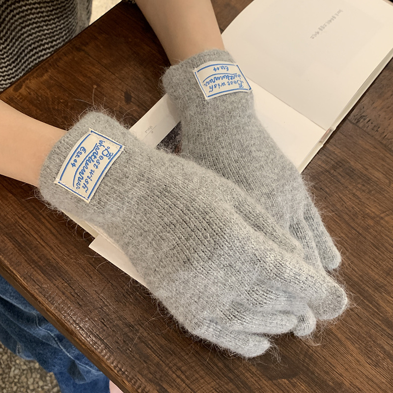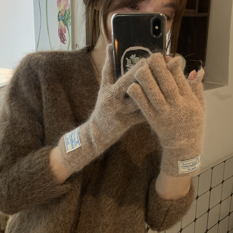 한국 스타일 아이콘 토끼 모피 장갑 솔리드 컬러 니트 터치 스크린 손가락 따뜻한 장갑 여성용 스카프 세트 따뜻한 투피스스토어 가기