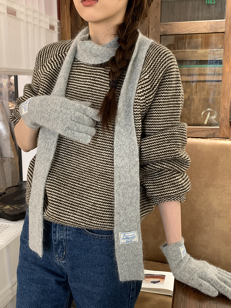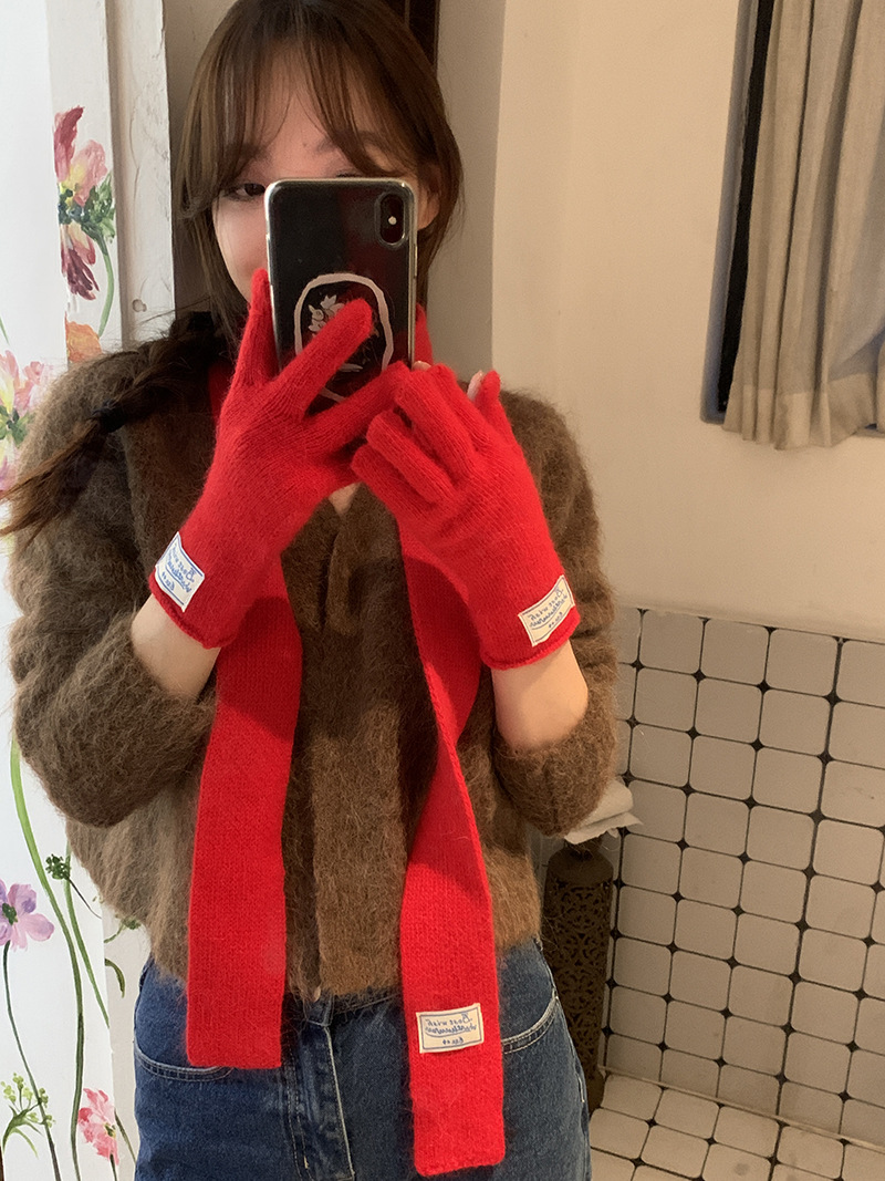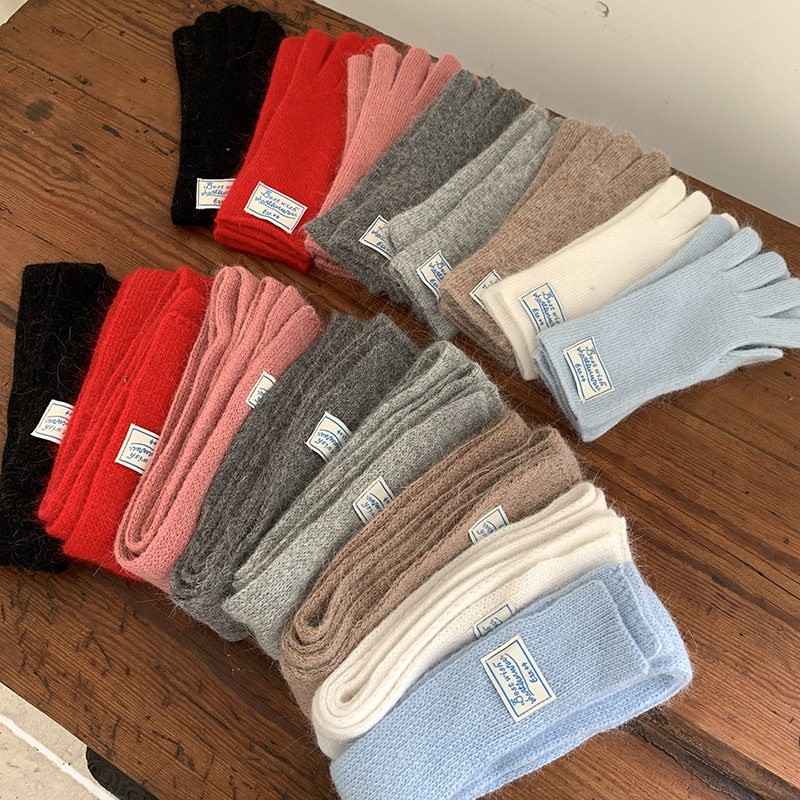 한국 스타일 아이콘 토끼 모피 장갑 솔리드 컬러 니트 터치 스크린 손가락 따뜻한 장갑 여성용 스카프 세트 따뜻한 투피스