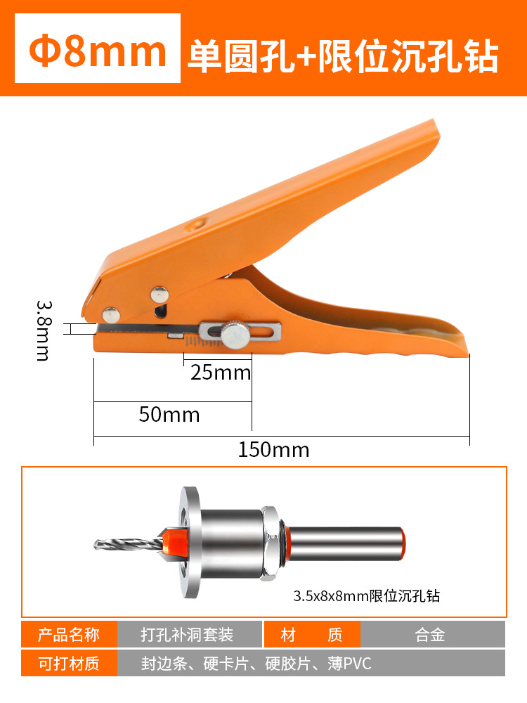 • [헤비 듀티 모델] 8mm 펀칭 펜치 + 3x8mm 제한 카운터싱크 드릴;