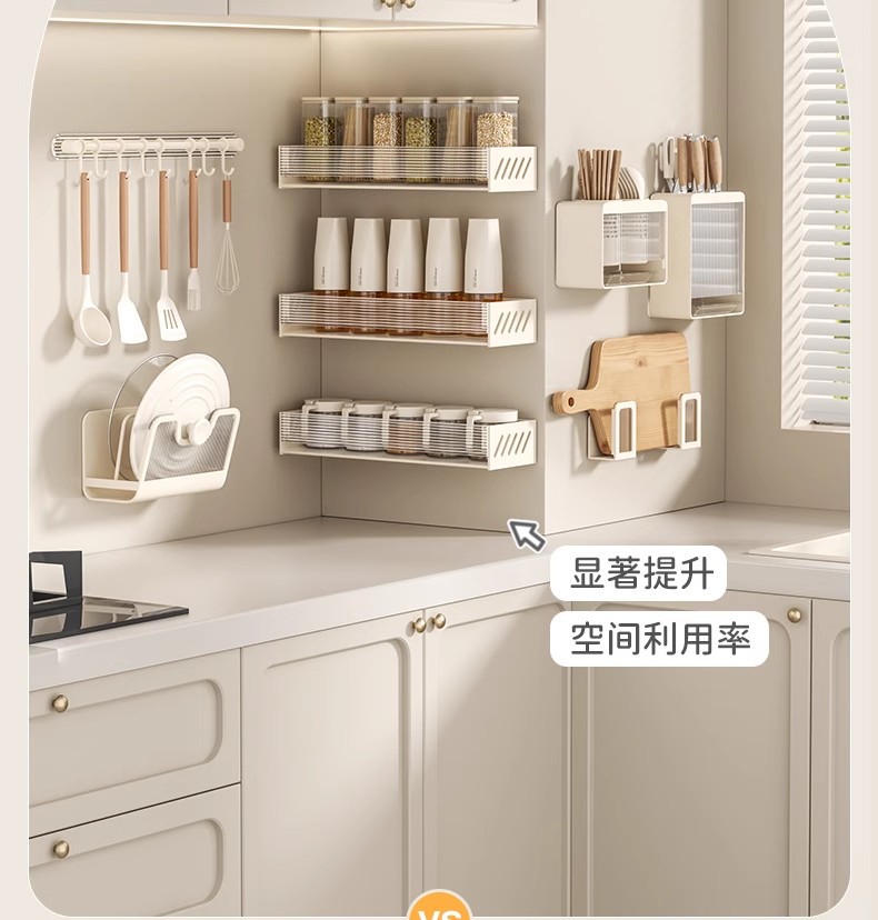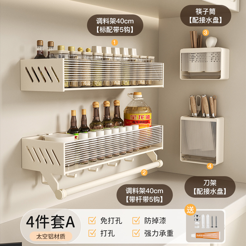 주방 조미료 보관 랙 벽 교수형 펀치 무료 이동식 칼 젓가락 조미료 조합 세트 보관 랙