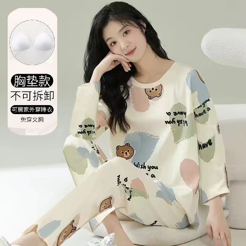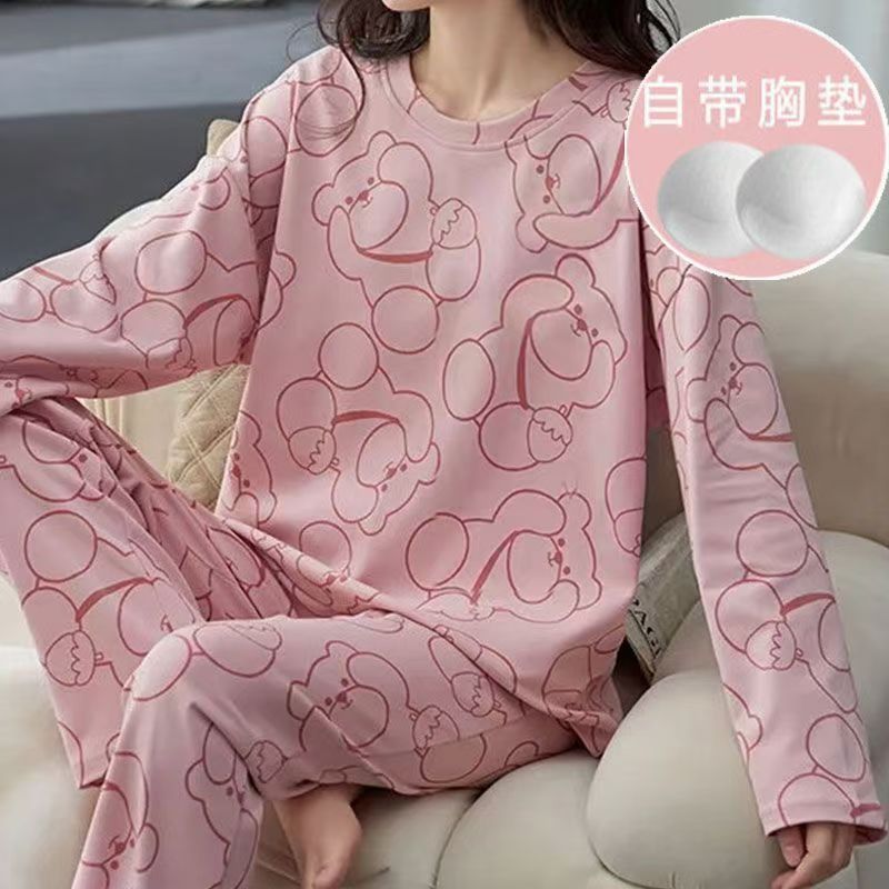 긴 소매 만화 귀여운 세트 여성의 안티 범프 풀오버 홈 옷을 입고 가을과 겨울 가슴 패드 잠옷과 함께 온다
