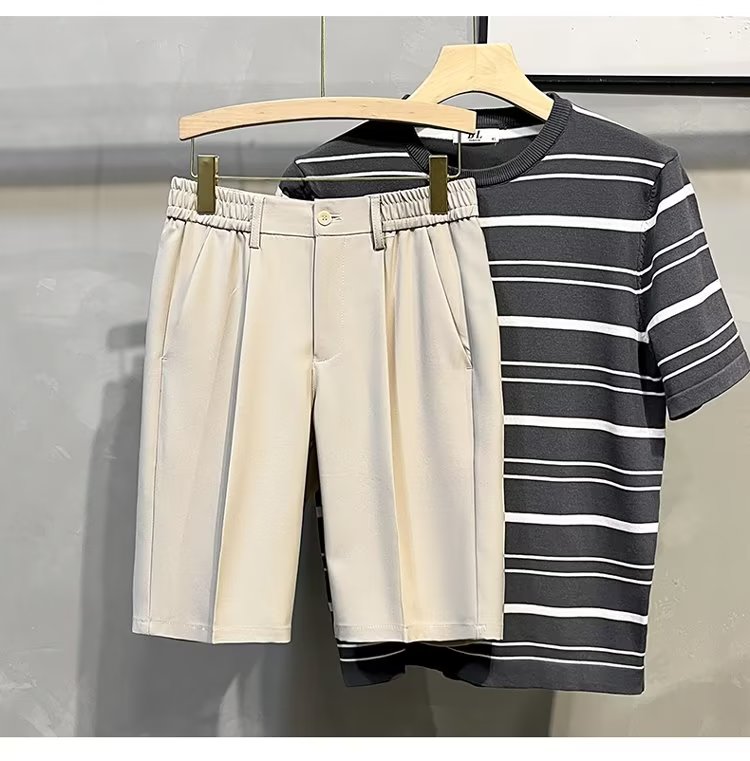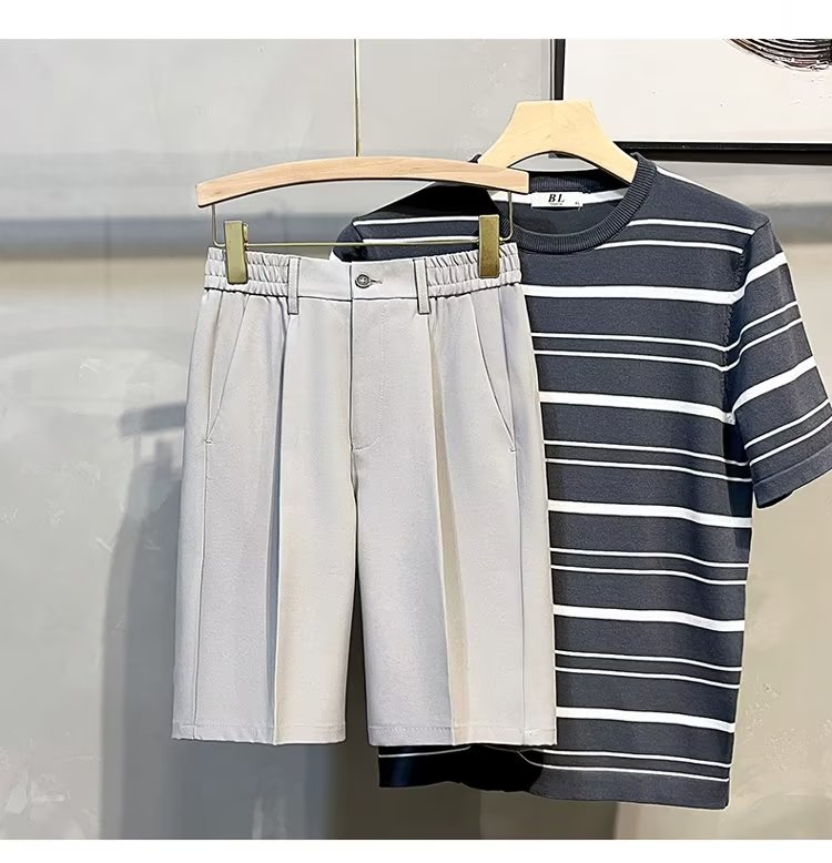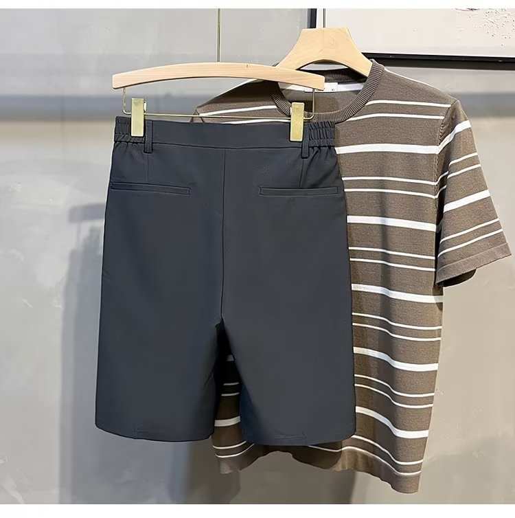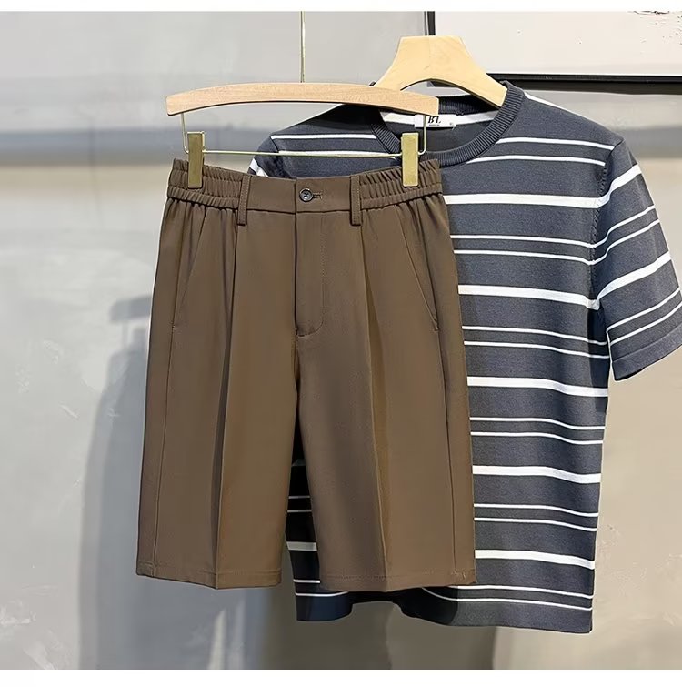 무릎 위 바지 남자 스트레이트 여름 Ins 느슨한 허리 세트 반바지 플러스 사이즈 느슨한 캐주얼 바지 트렌디