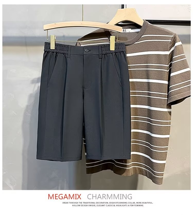 무릎 위 바지 남자 스트레이트 여름 Ins 느슨한 허리 세트 반바지 플러스 사이즈 느슨한 캐주얼 바지 트렌디스토어 가기