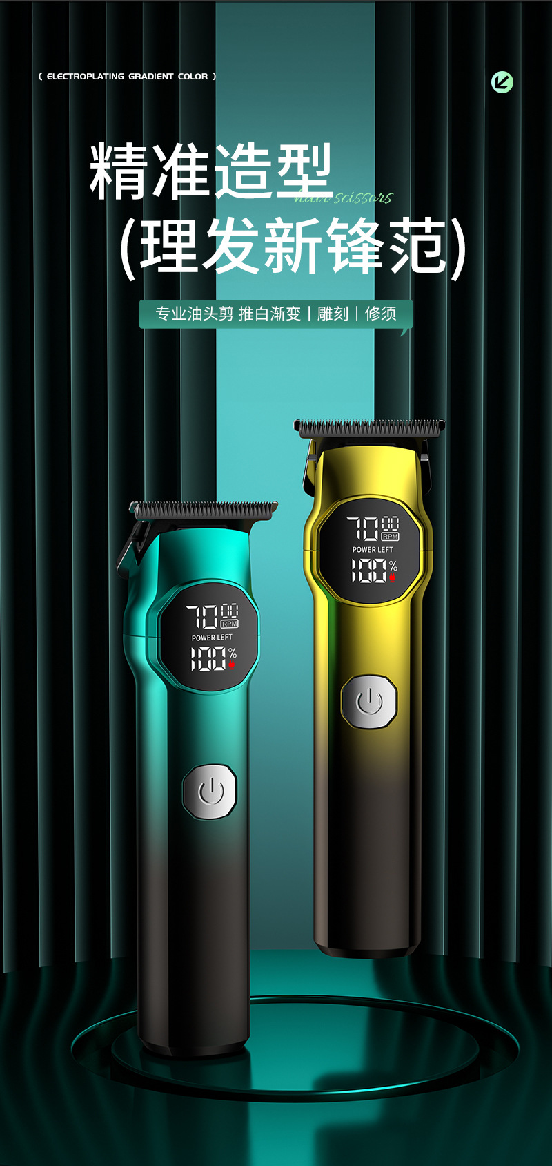 국경 간 새로운 헤어 클리퍼 고출력 디지털 디스플레이 조각 오일 헤드 전기 클리퍼 충전식 헤어 살롱 가정용 푸셔스토어 가기