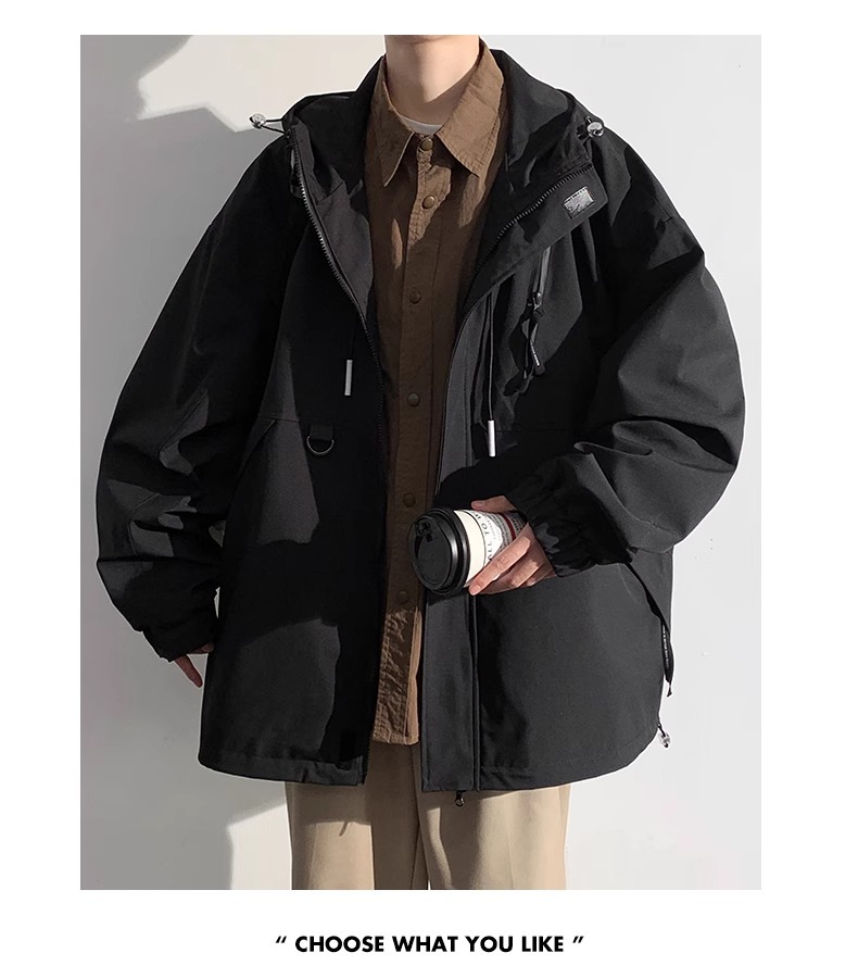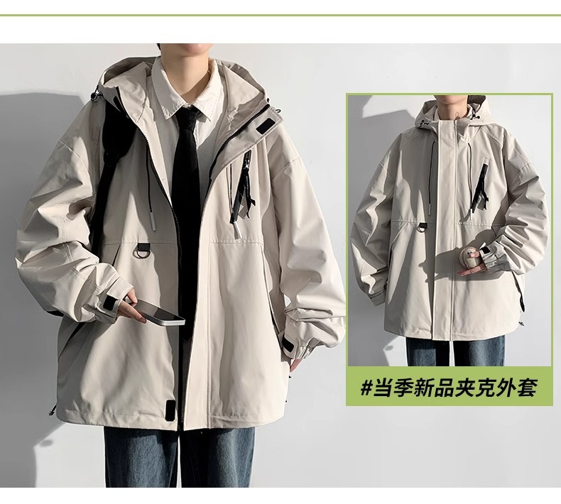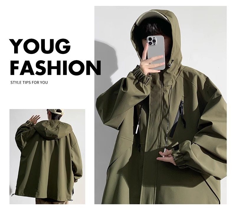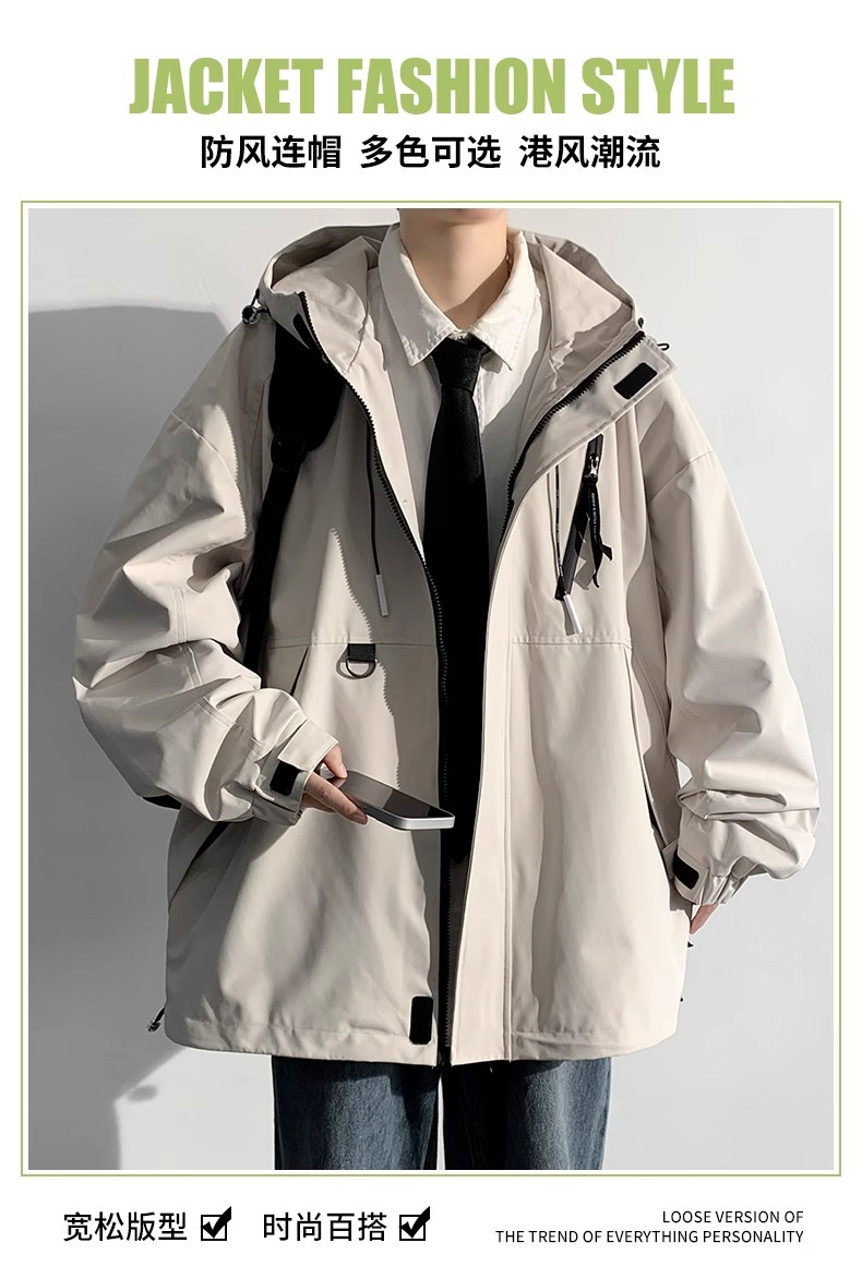 NASA 새로운 재킷 남자의 봄과 가을 후드 작업 자켓 유행 브랜드 캐주얼 느슨한 방풍 방수 충전 재킷