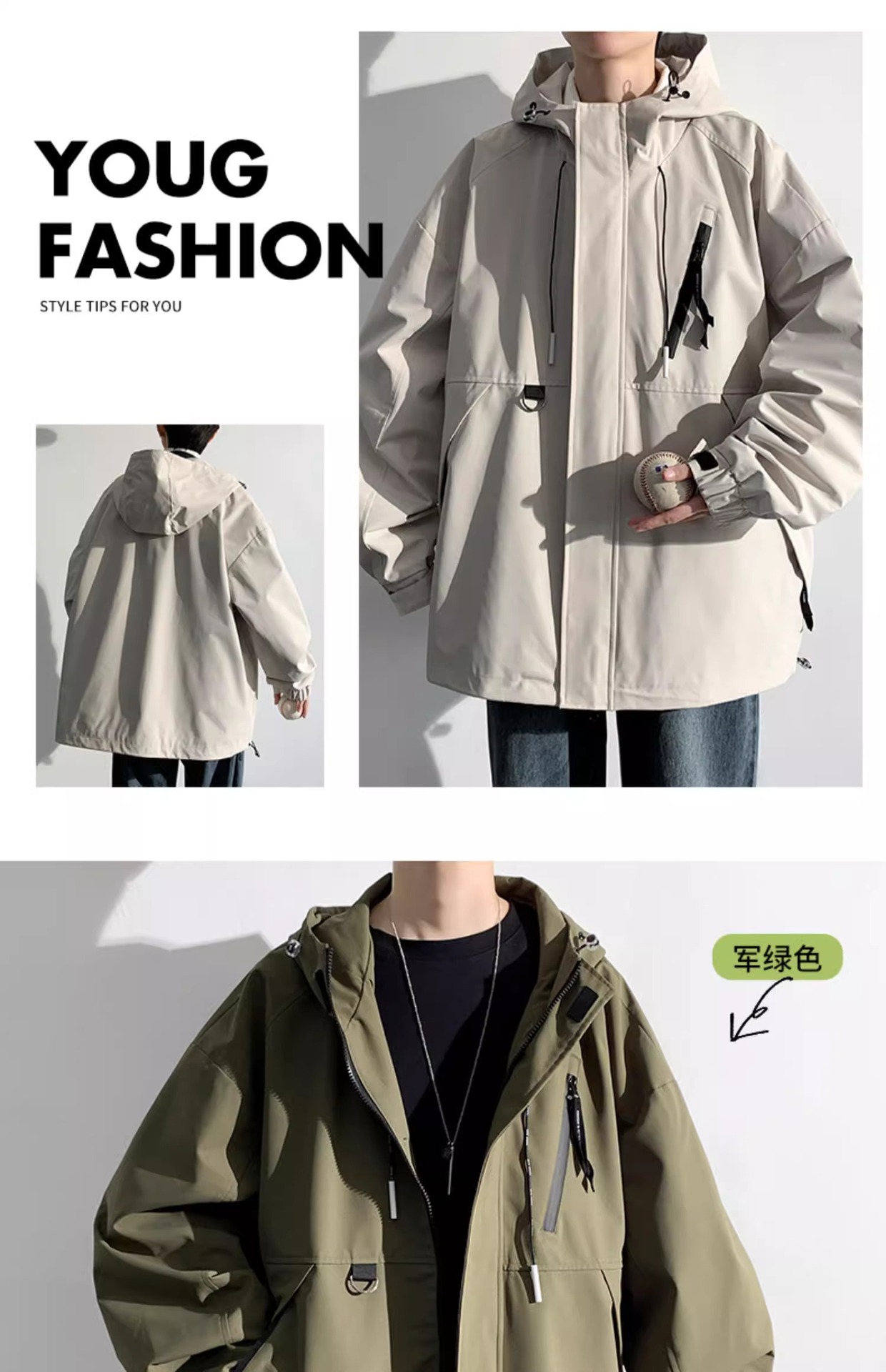 NASA 새로운 재킷 남자의 봄과 가을 후드 작업 자켓 유행 브랜드 캐주얼 느슨한 방풍 방수 충전 재킷스토어 가기