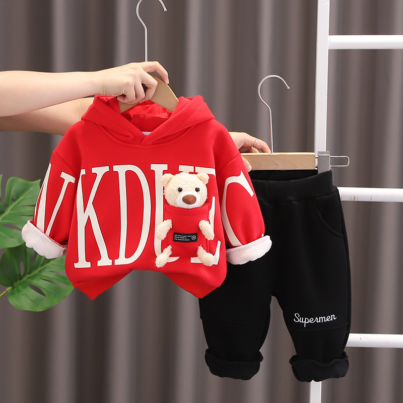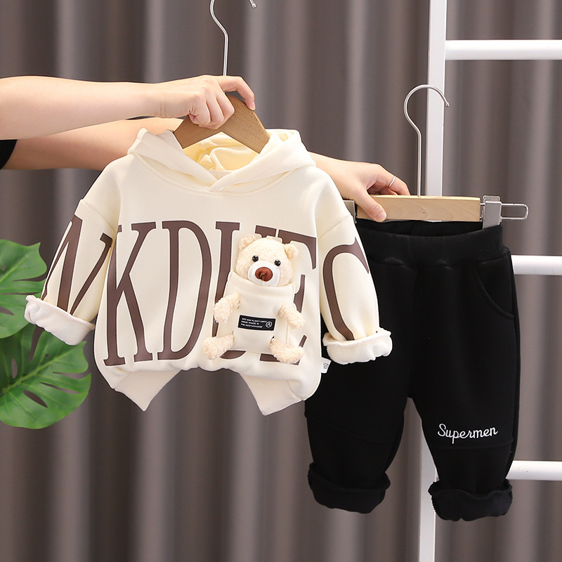 남학생 기모 스웨터 세트 2024 가을과 겨울 새로운 어린이 아기 편지 곰 잘 생긴 캐주얼 투피스 세트스토어 가기
