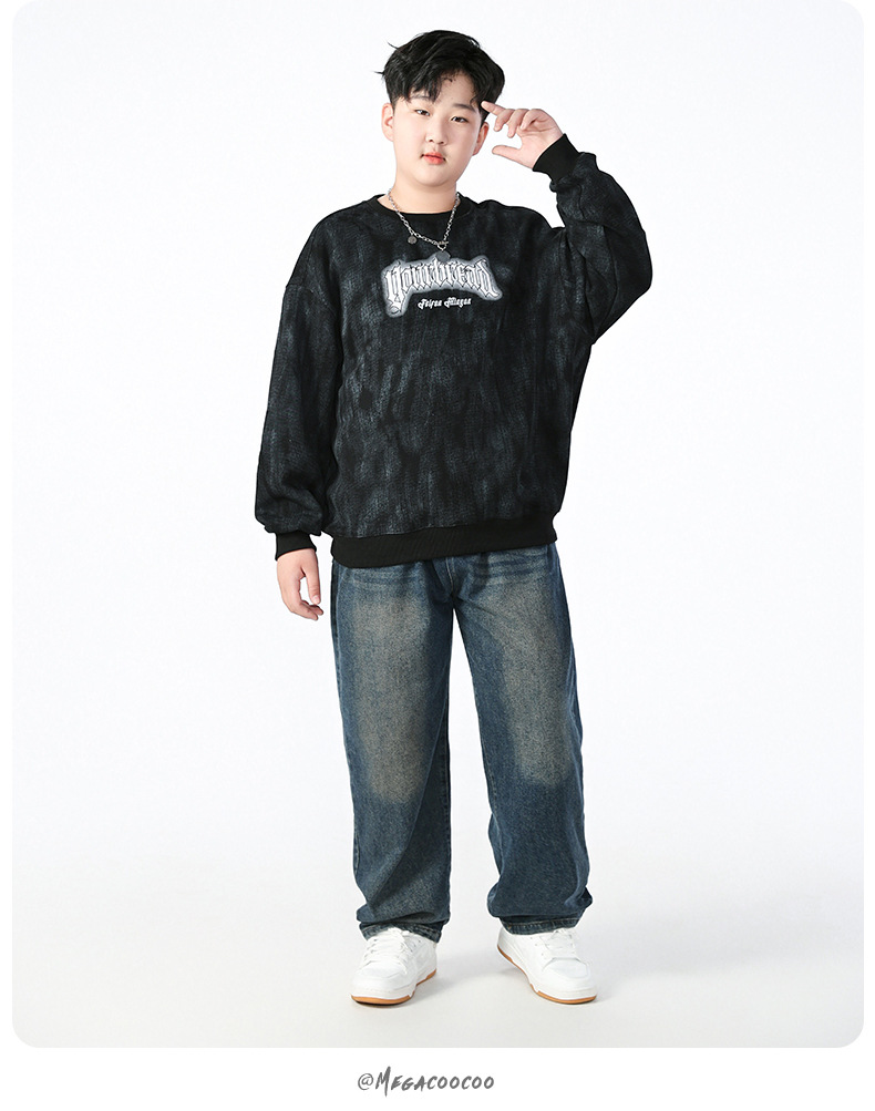 통통한 소년 청바지 봄과 가을 플러스 대형 느슨한 캐주얼 데님 스트레이트 바지 토레 바지
