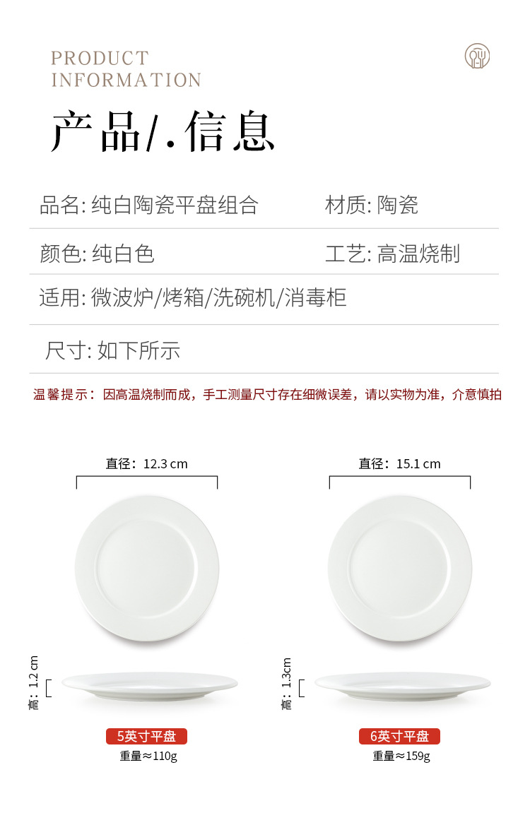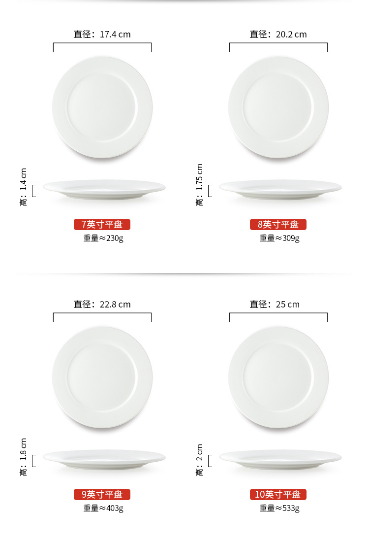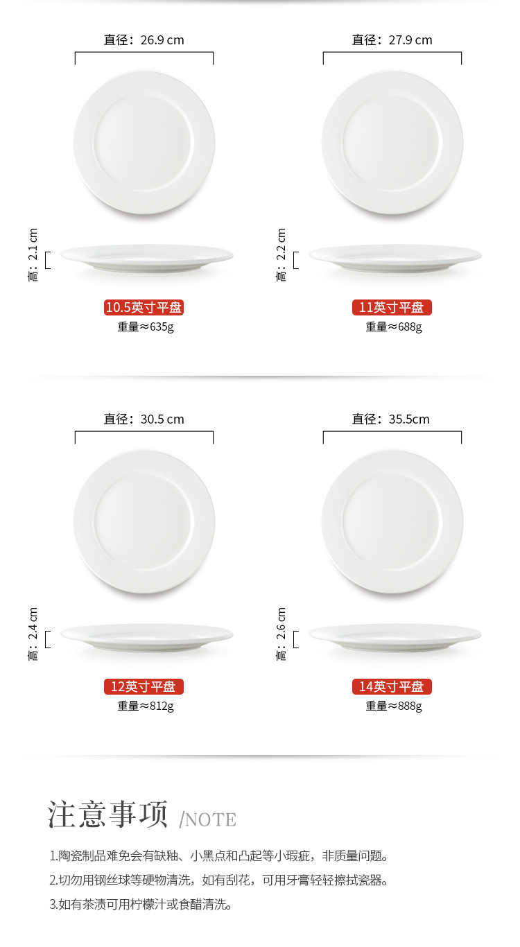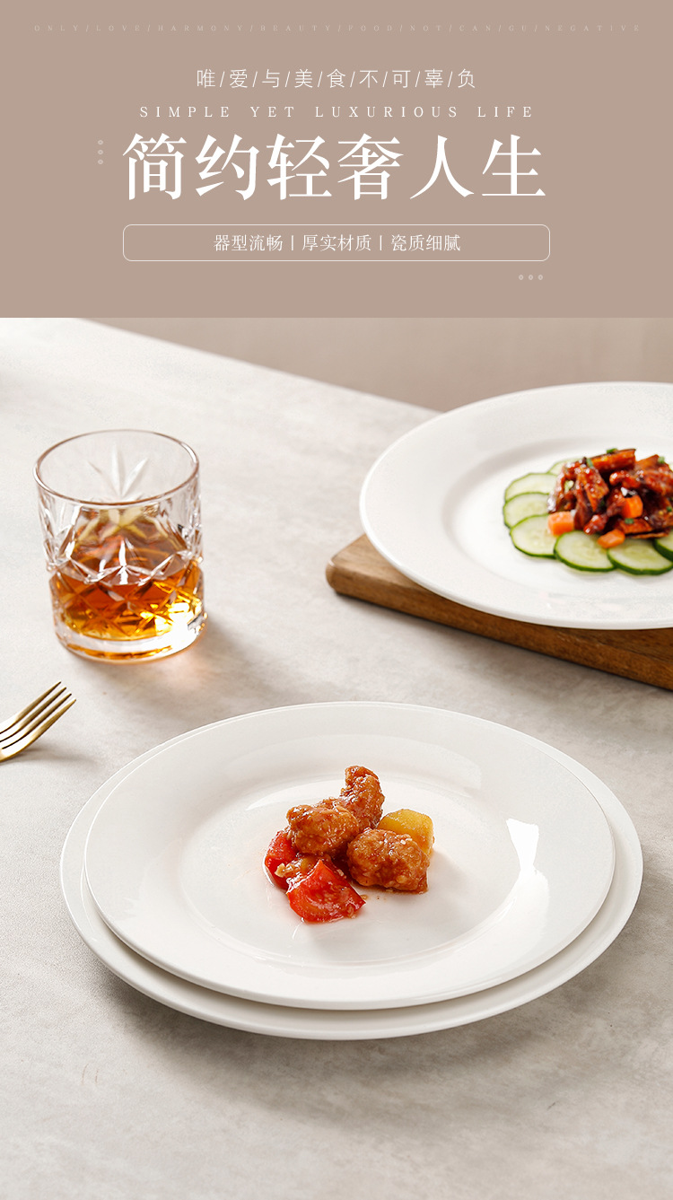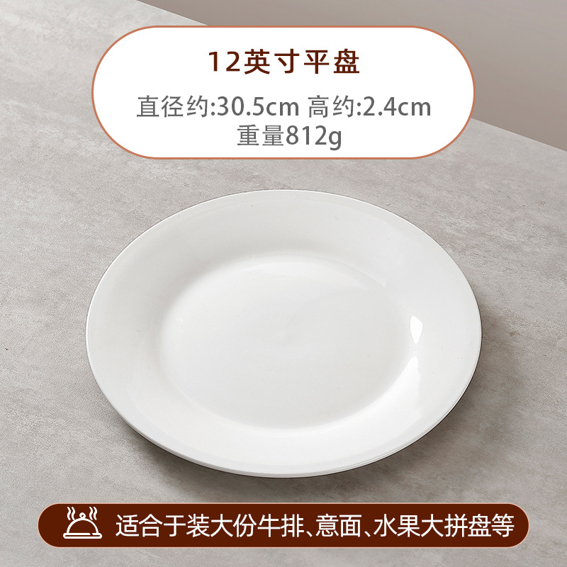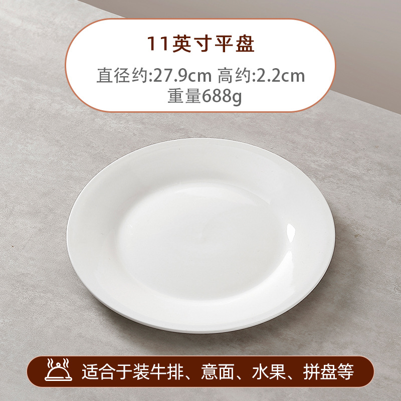 도매 플랫 플레이트 얕은 플레이트 순수 화이트 세라믹 플레이트 가정용 접시 호텔 웨스턴 푸드 스테이크 플레이트 접시 웨스턴 식기스토어 가기