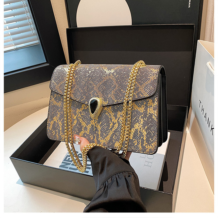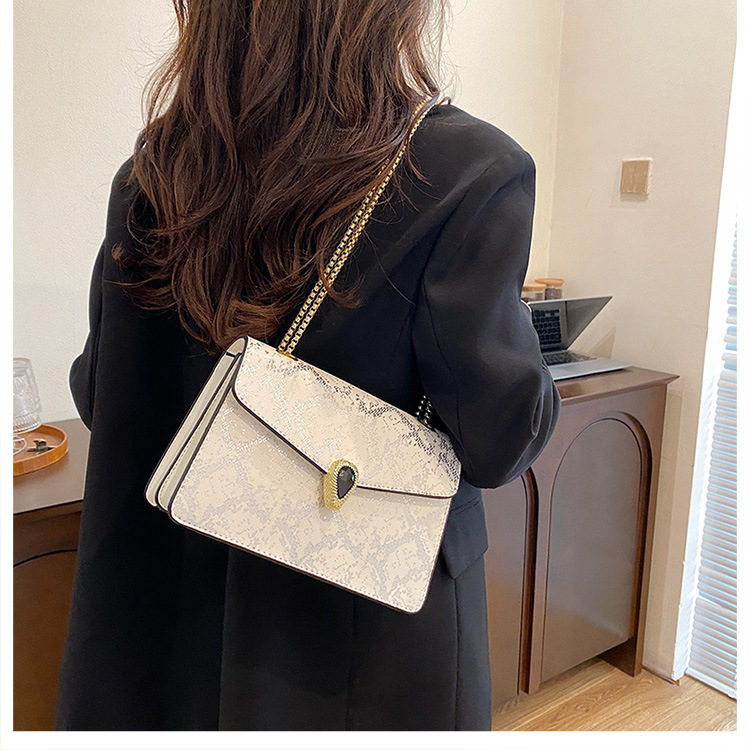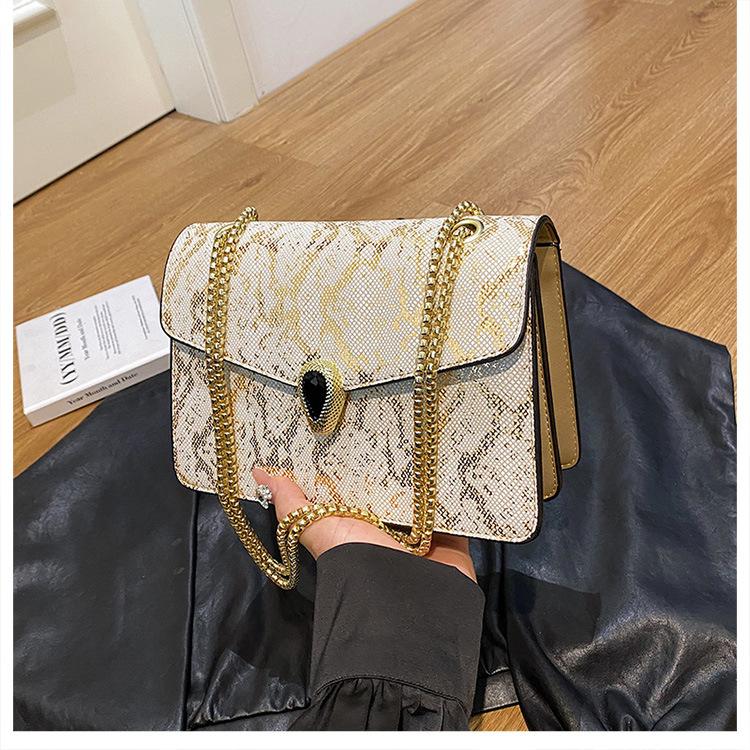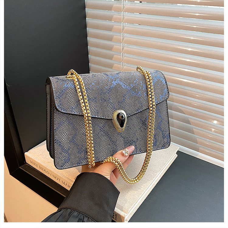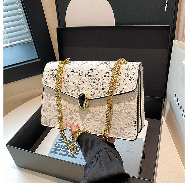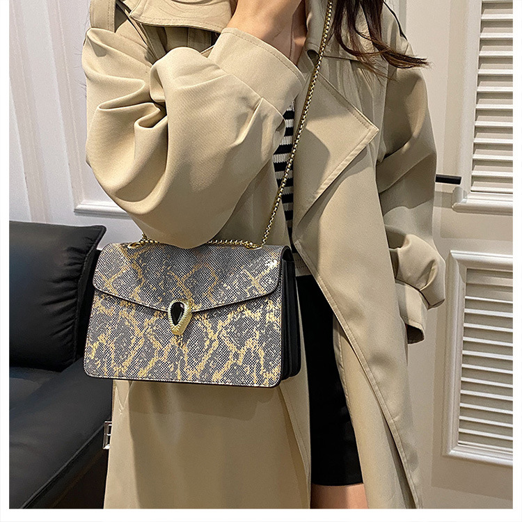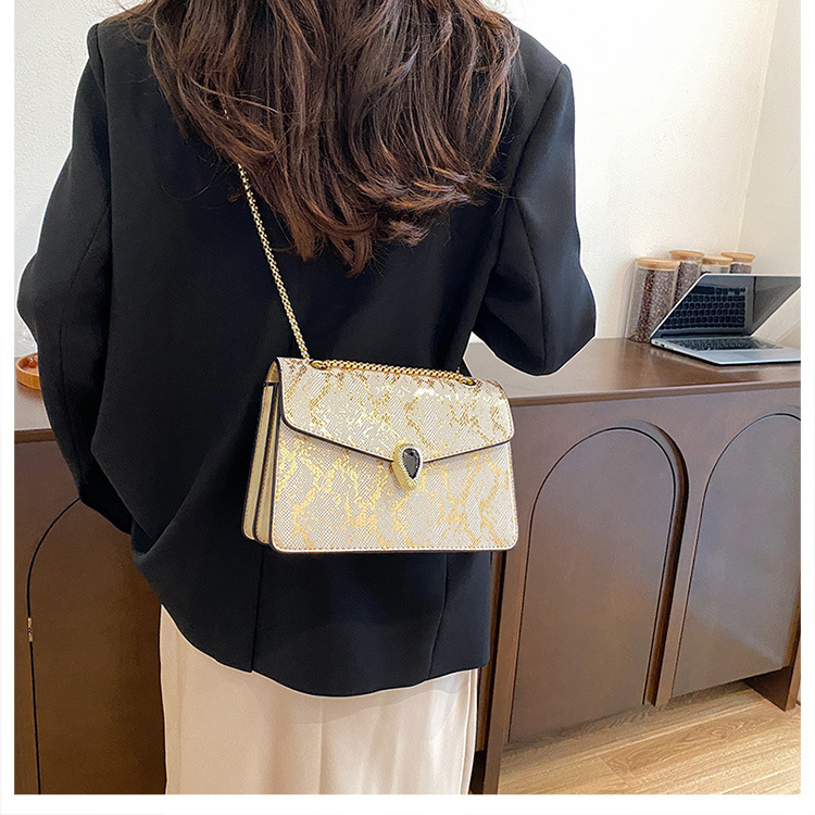 국경 간 새로운 질감 뱀 패턴 가방 여성 패션 복고풍 체인 작은 사각형 가방 유럽과 미국 패션 가방 어깨 메신저 가방