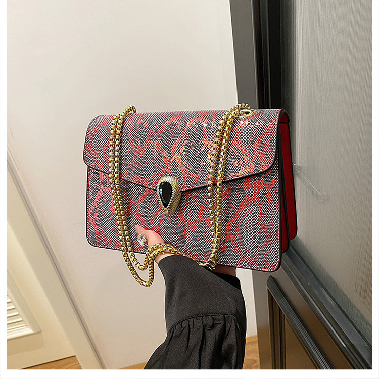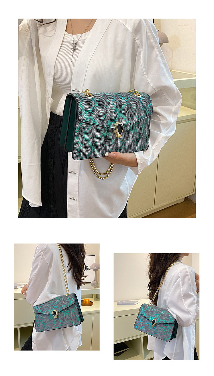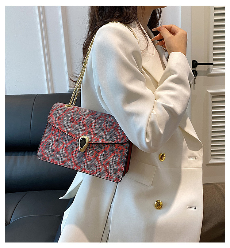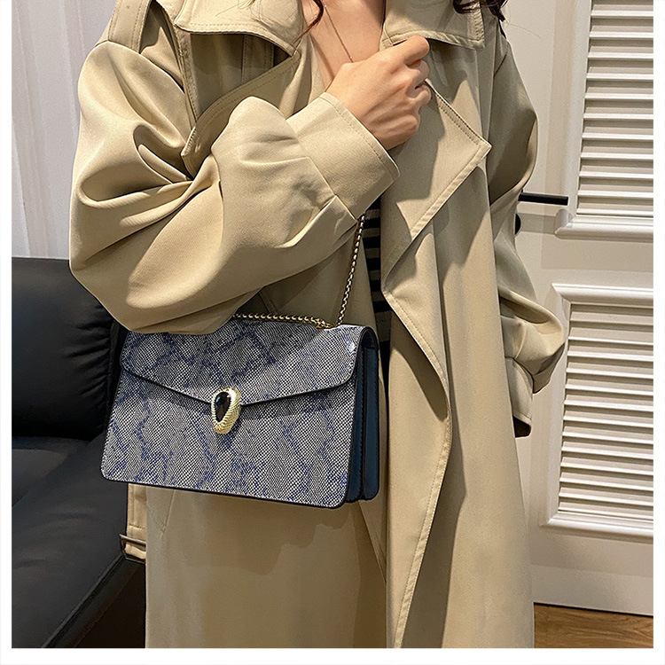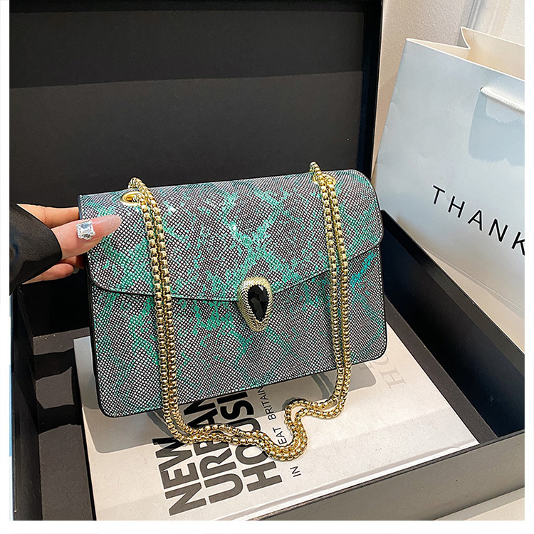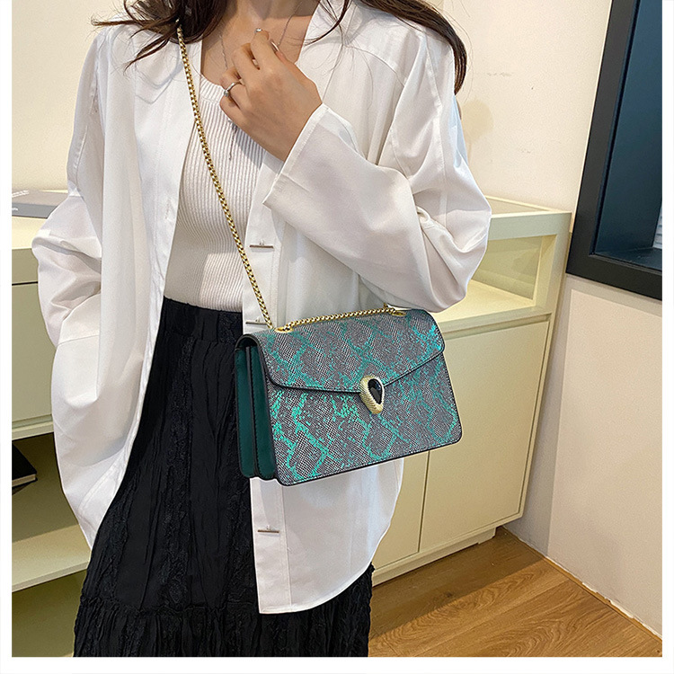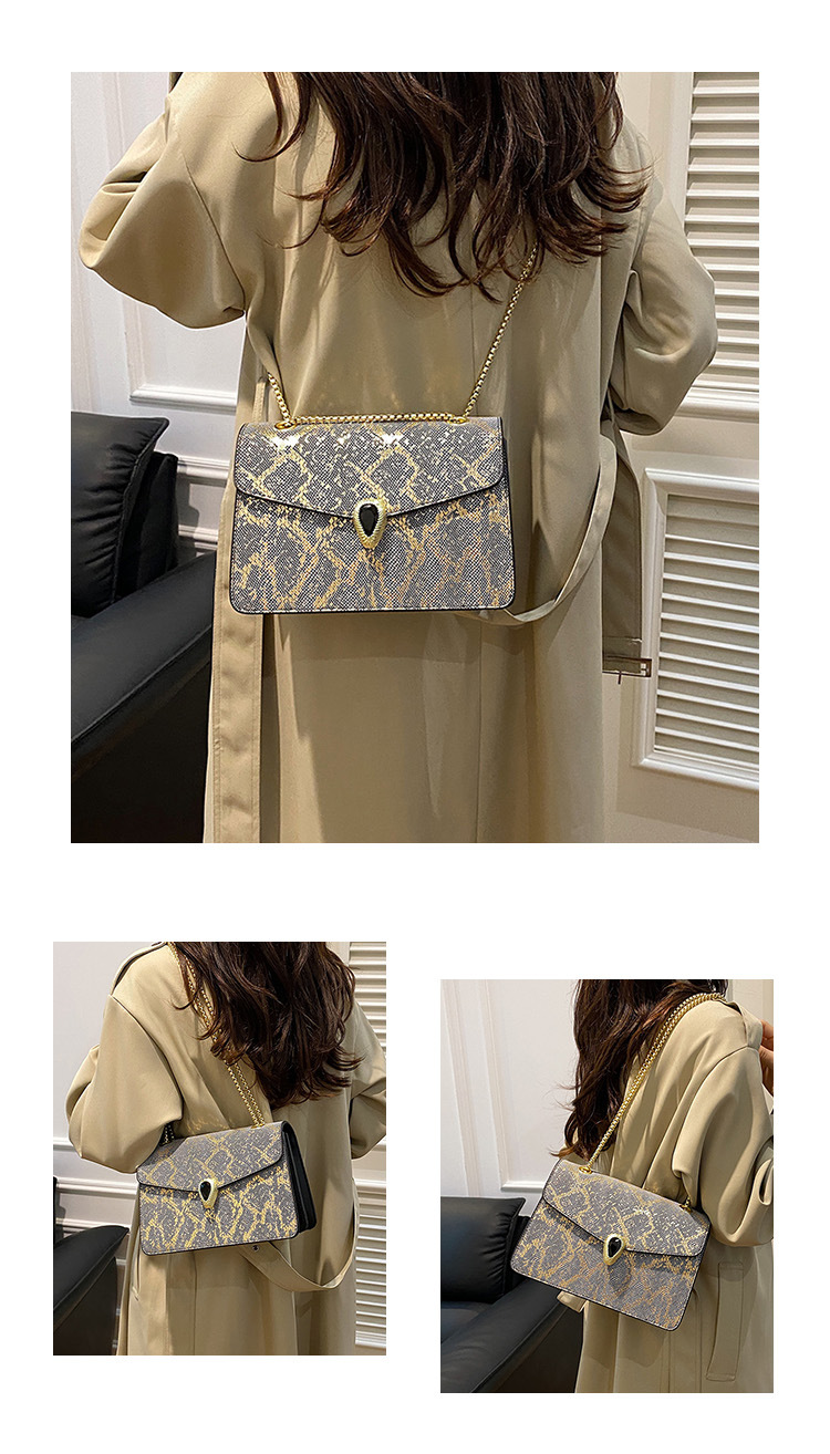 국경 간 새로운 질감 뱀 패턴 가방 여성 패션 복고풍 체인 작은 사각형 가방 유럽과 미국 패션 가방 어깨 메신저 가방