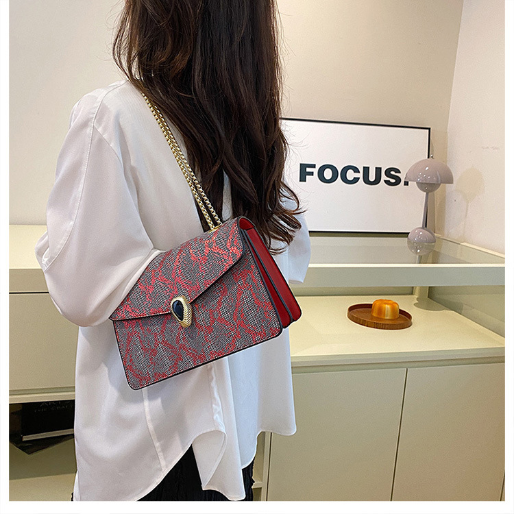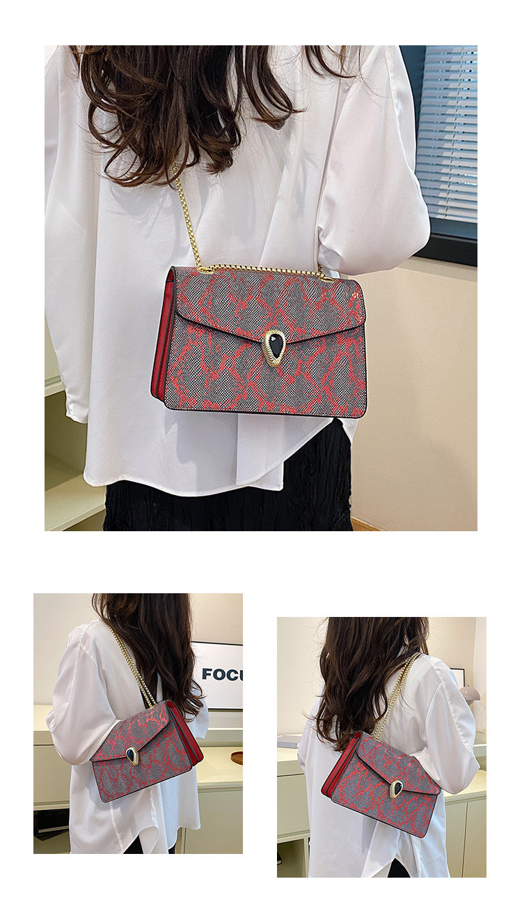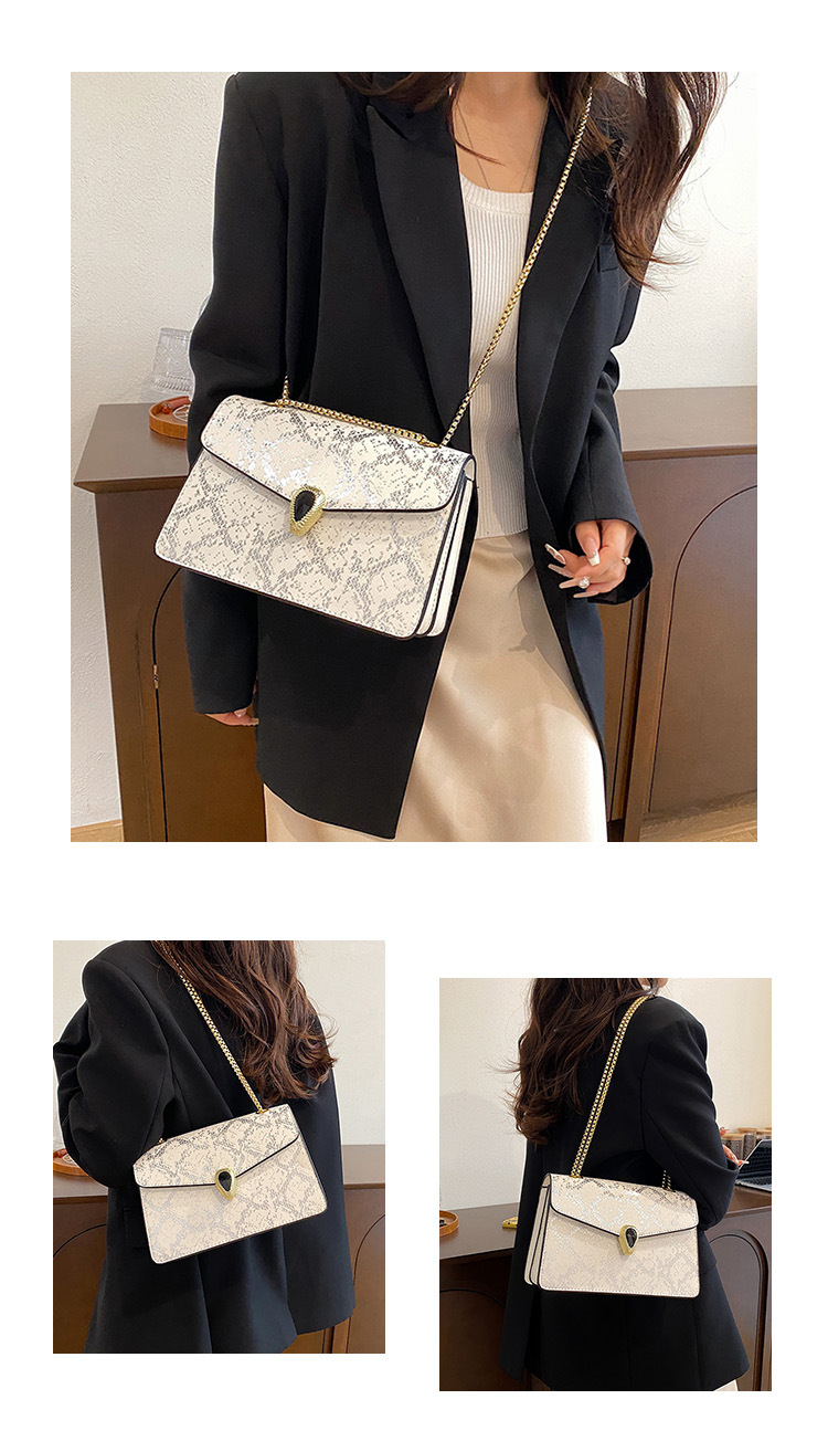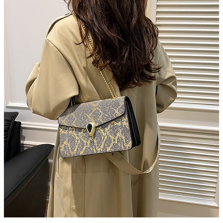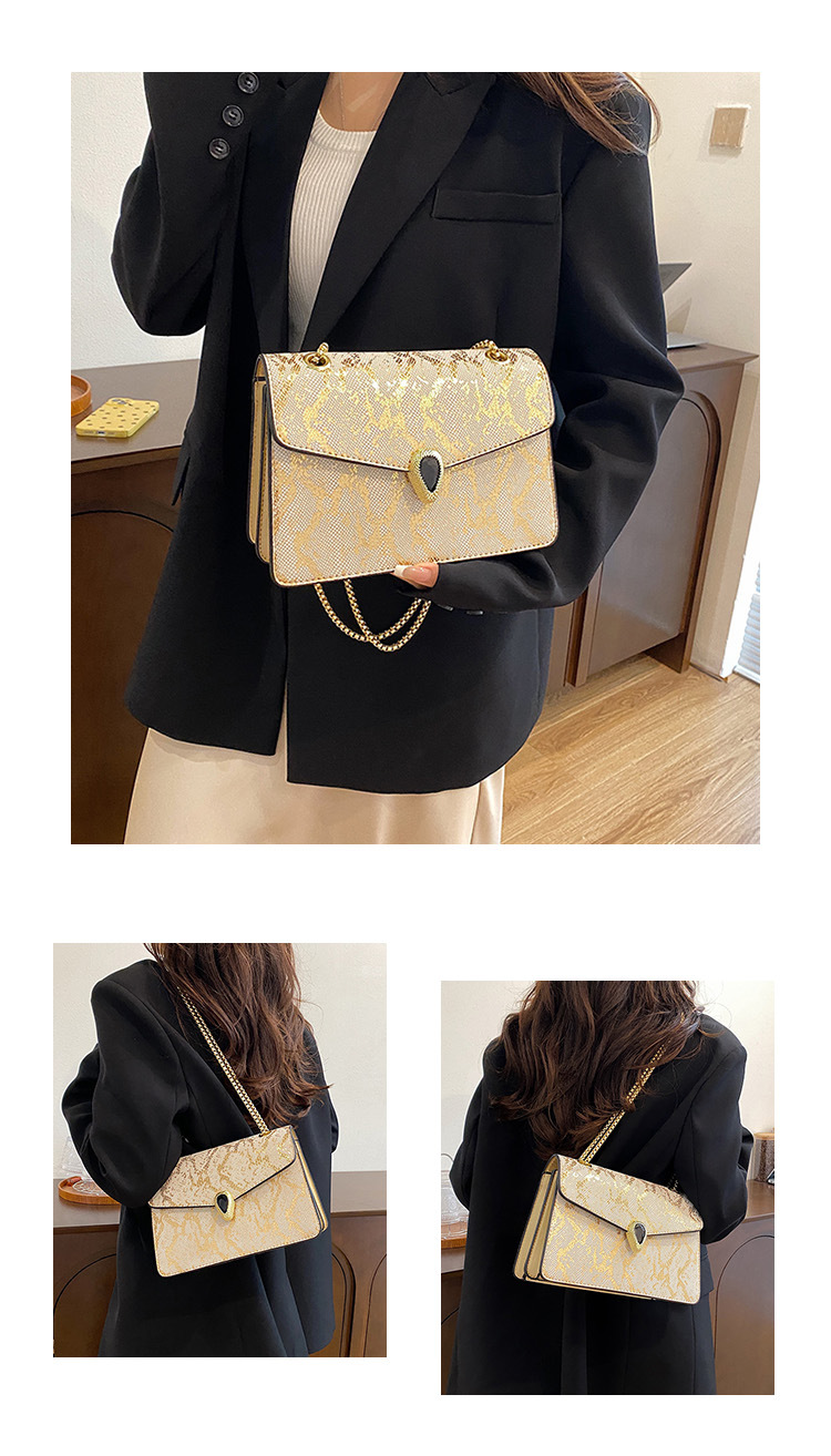 국경 간 새로운 질감 뱀 패턴 가방 여성 패션 복고풍 체인 작은 사각형 가방 유럽과 미국 패션 가방 어깨 메신저 가방