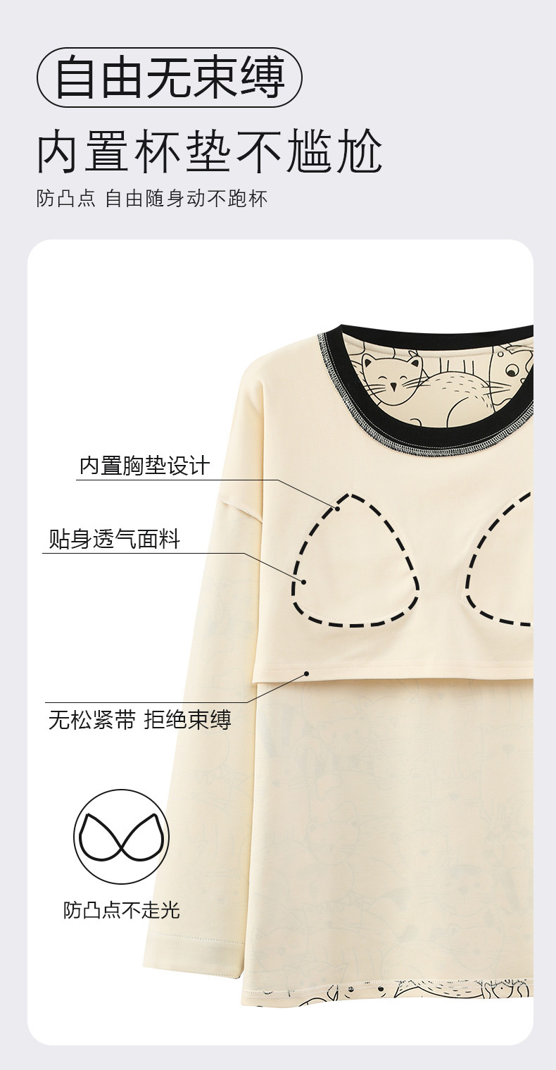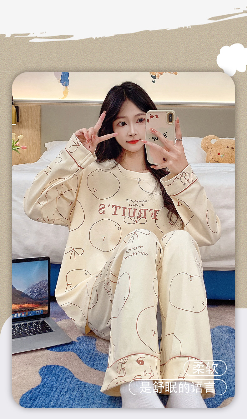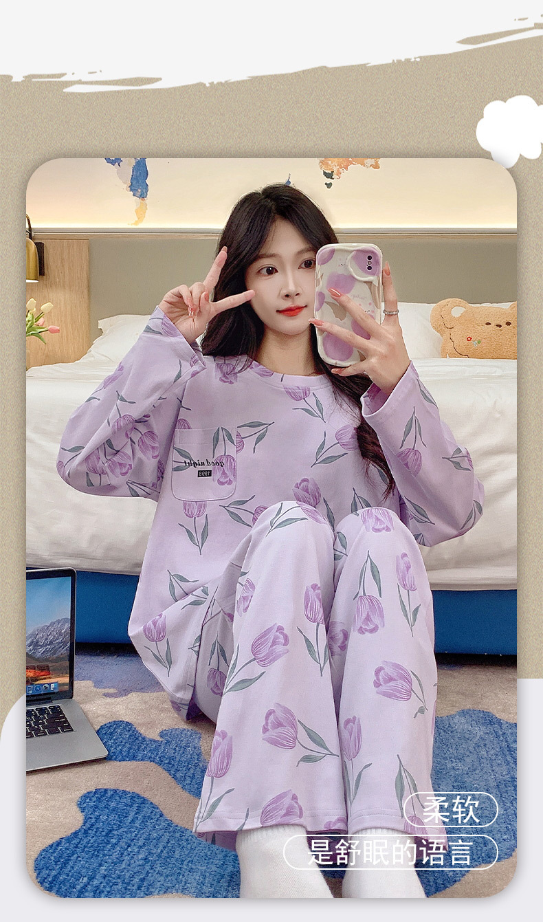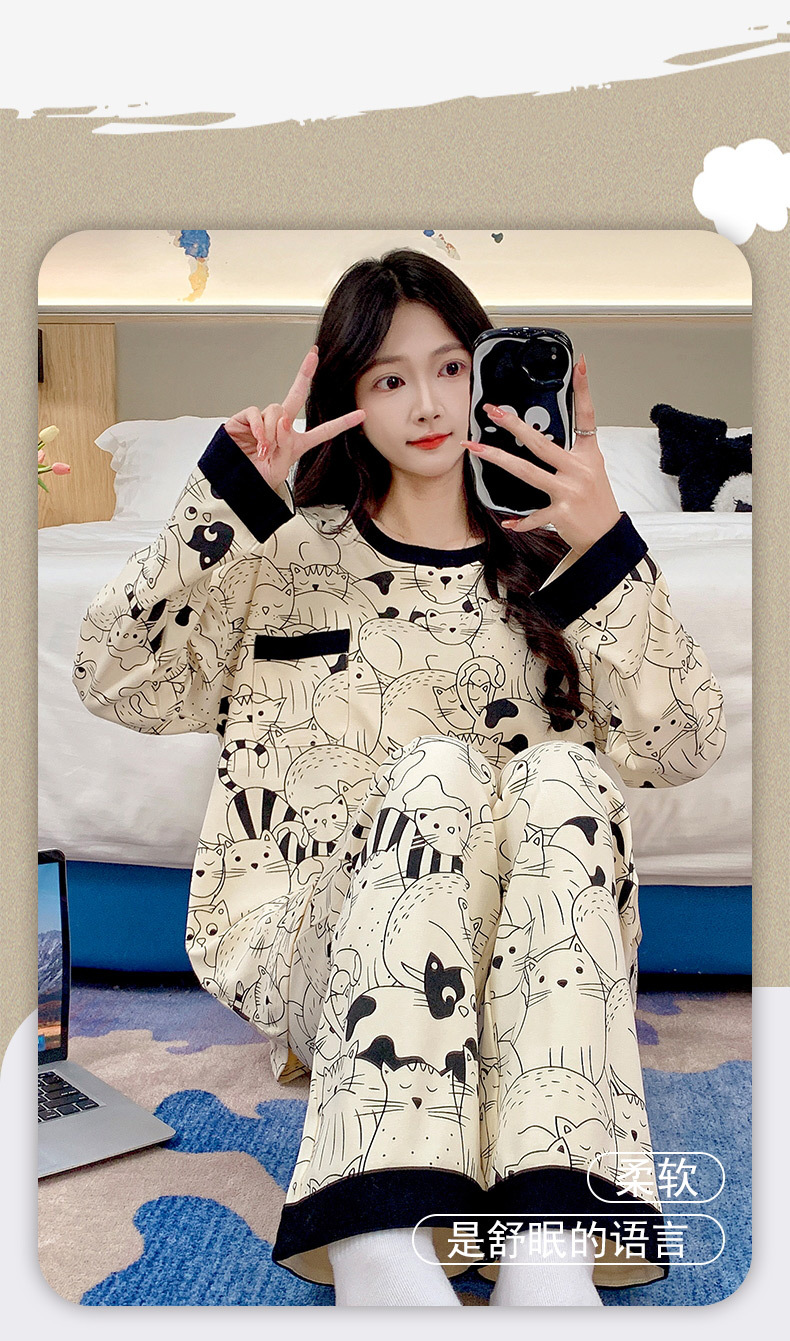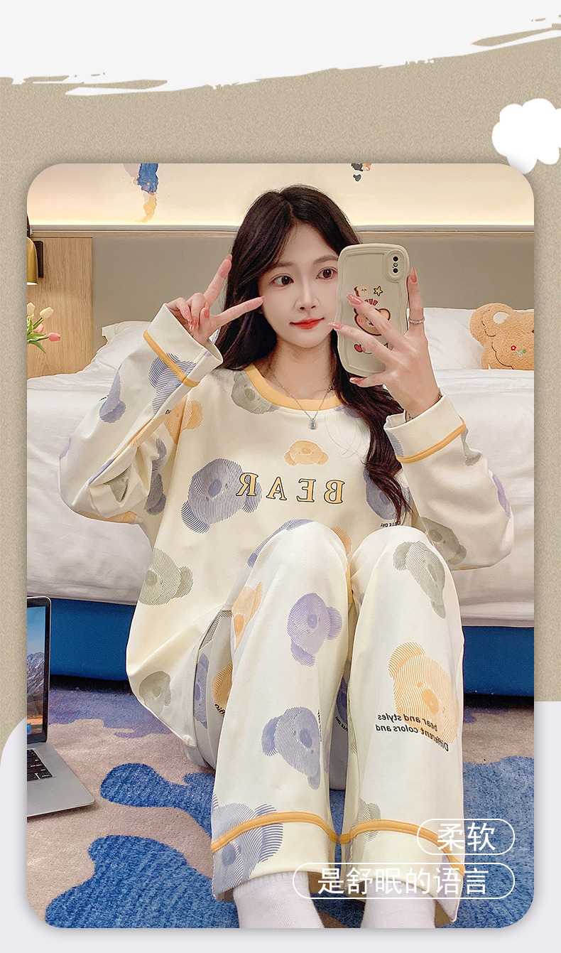 긴 소매 바지 파자마 여성의 봄과 가을 면 가슴 패드와 함께 귀여운 여성 소녀의 집 옷 2024 새로운 가을과 겨울스토어 가기