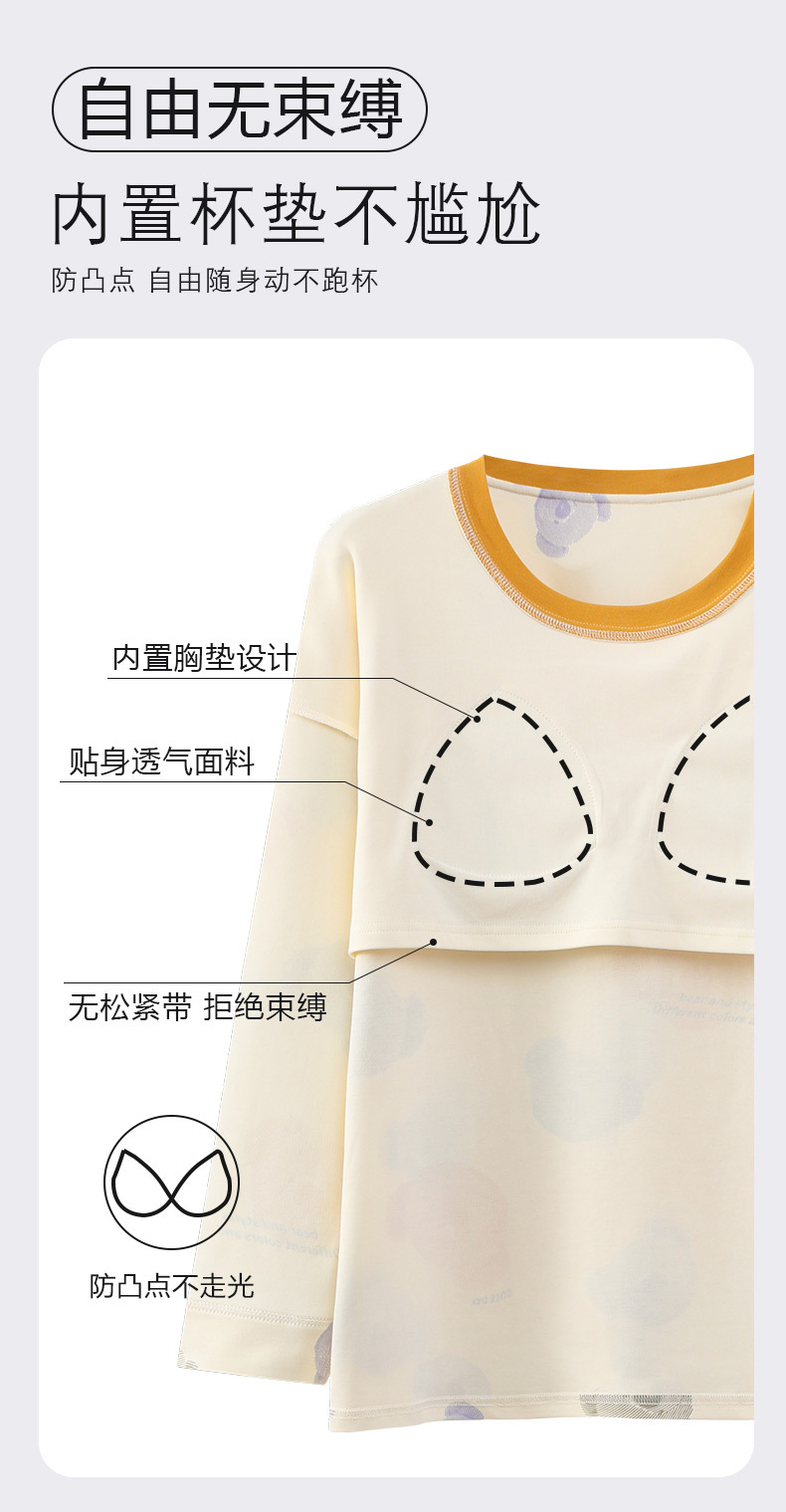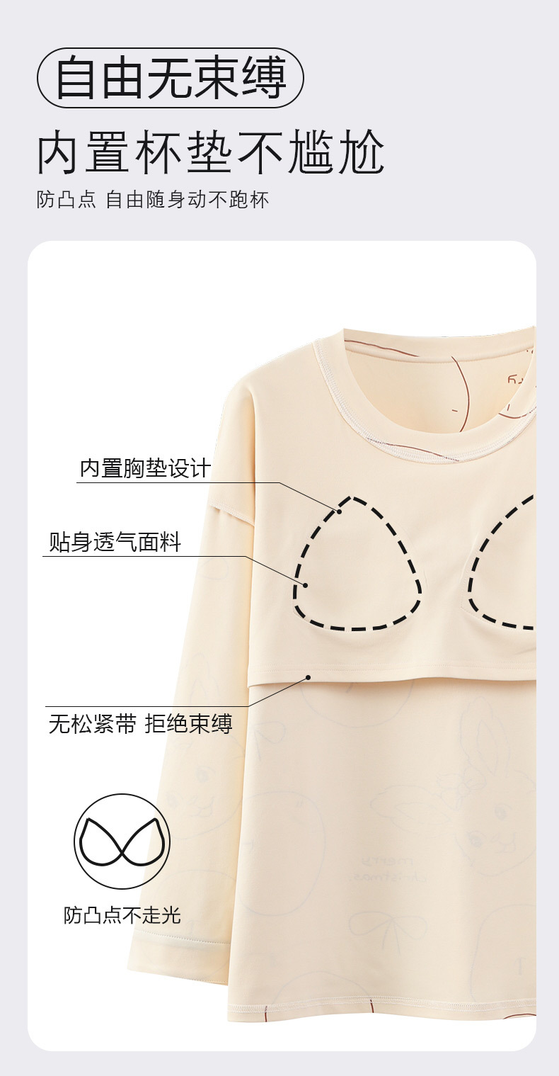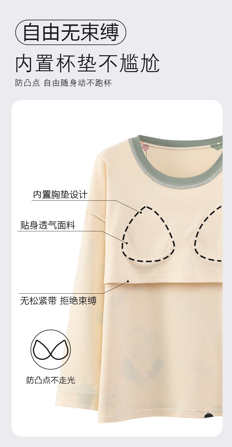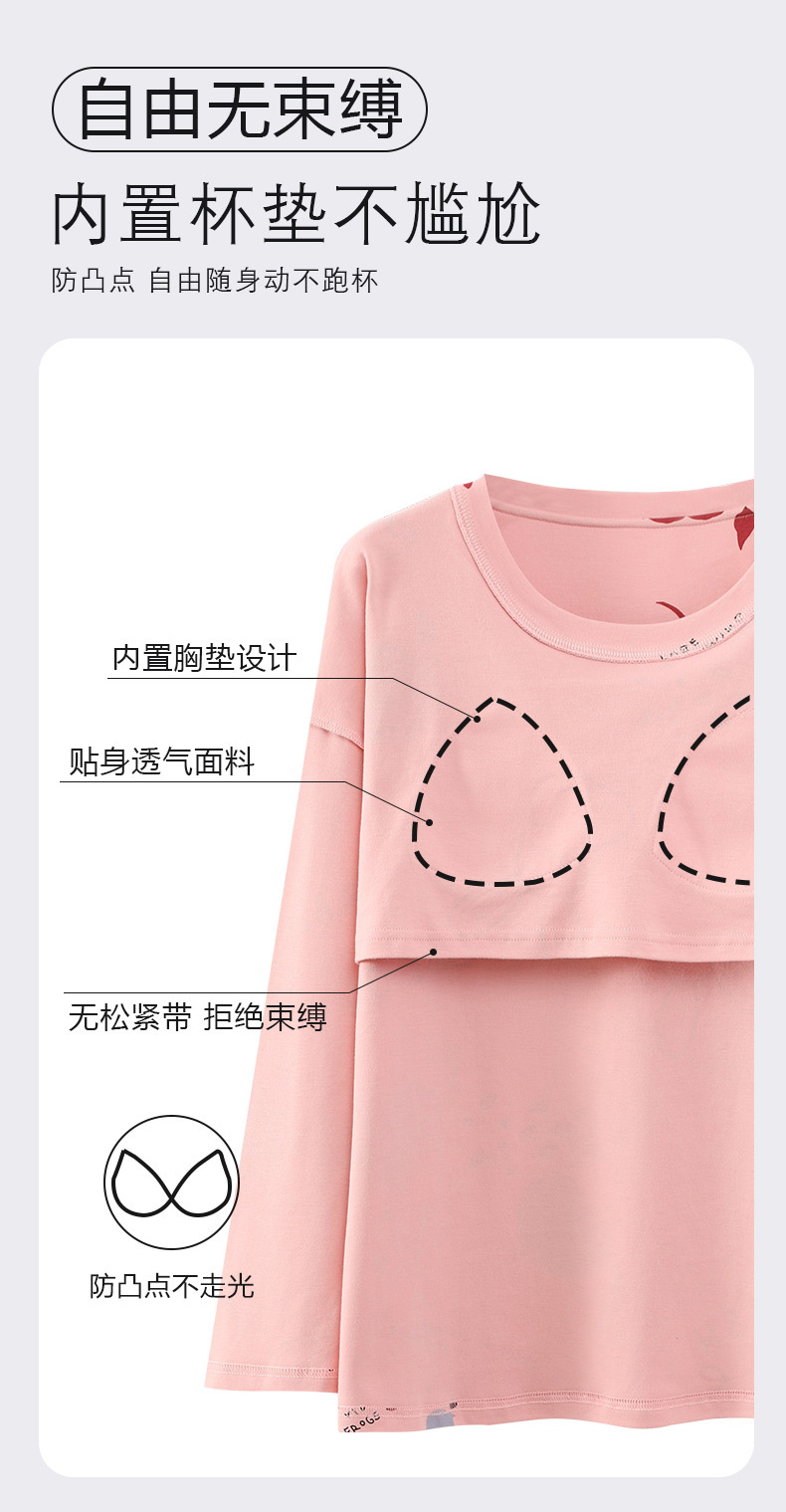 긴 소매 바지 파자마 여성의 봄과 가을 면 가슴 패드와 함께 귀여운 여성 소녀의 집 옷 2024 새로운 가을과 겨울스토어 가기