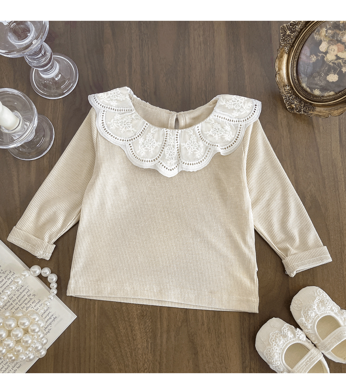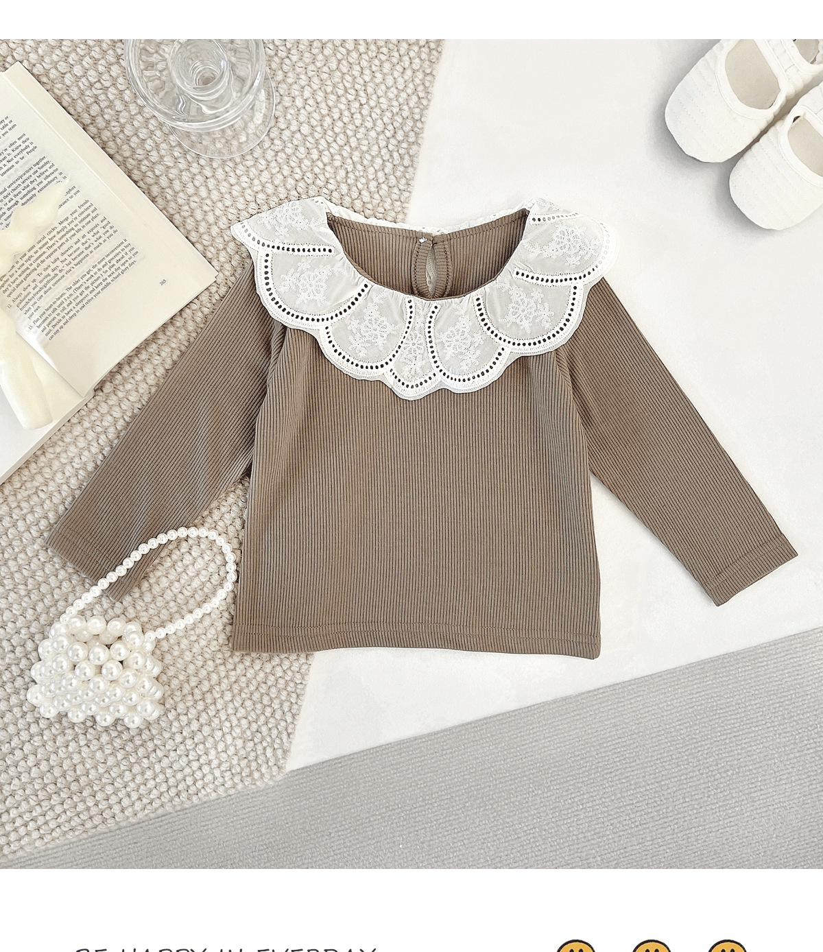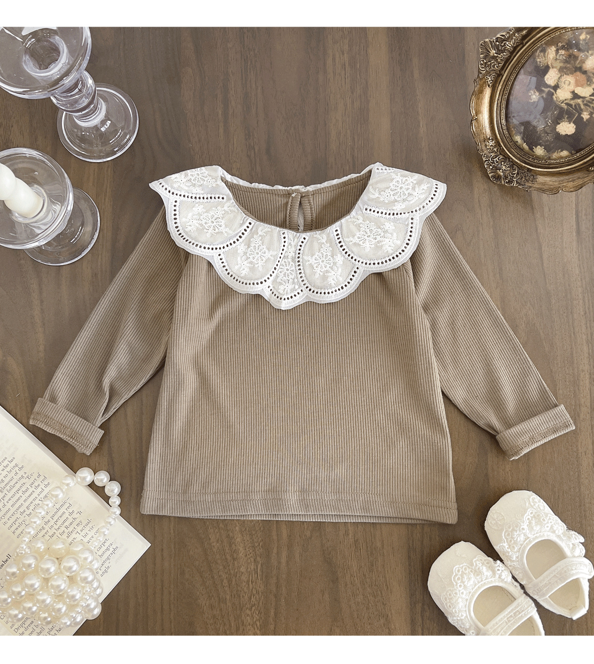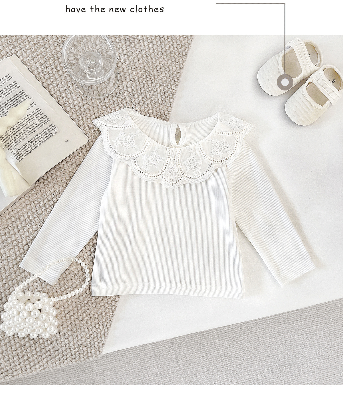 아기의 봄과 가을 인형 칼라 스타일 티셔츠 한국 스타일 아기 소녀의 가을 로터베이스 셔츠 어린이 탑