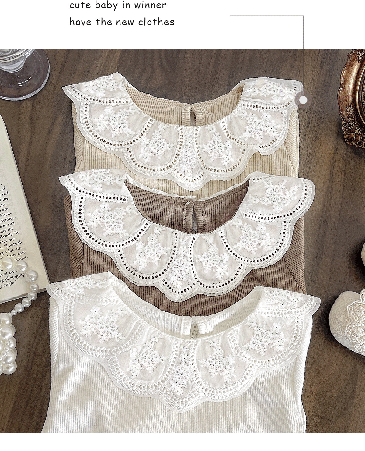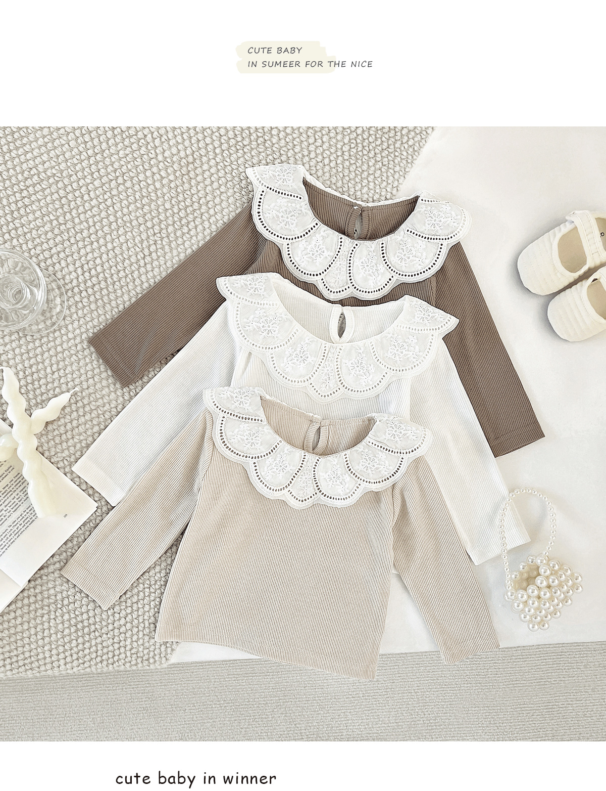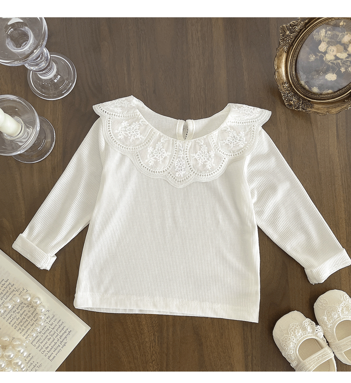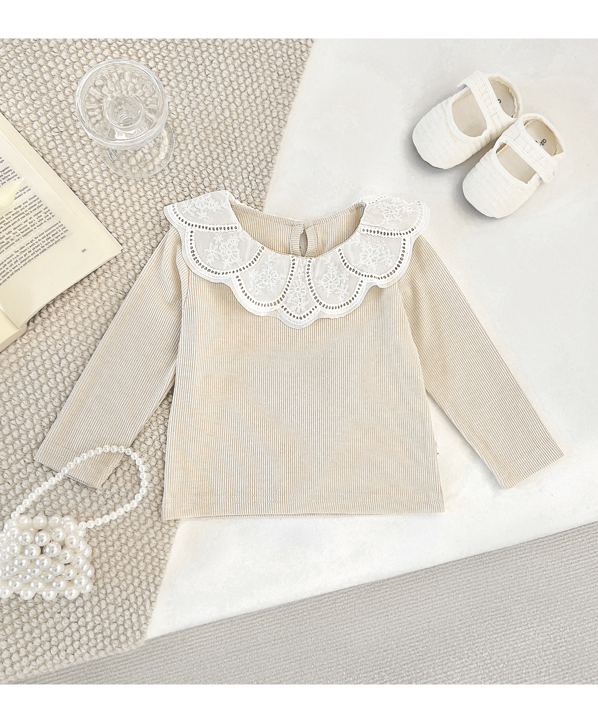 아기의 봄과 가을 인형 칼라 스타일 티셔츠 한국 스타일 아기 소녀의 가을 로터베이스 셔츠 어린이 탑