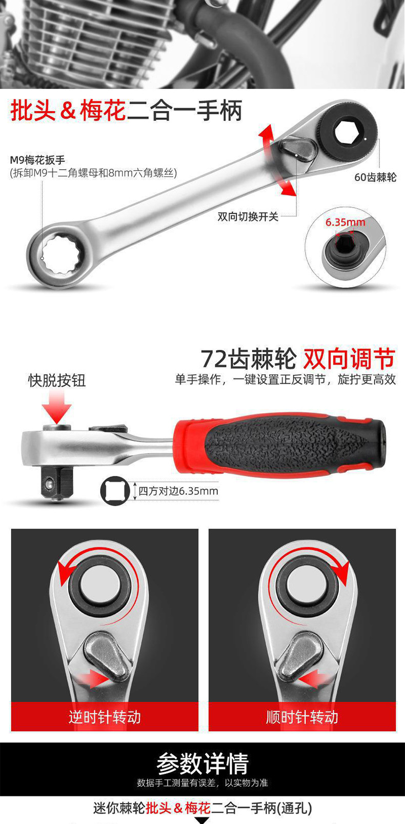 • 빨간색 1/4 래칫 핸들 스루홀 드라이버