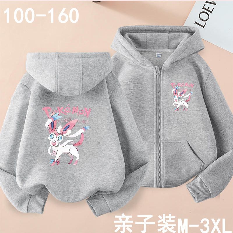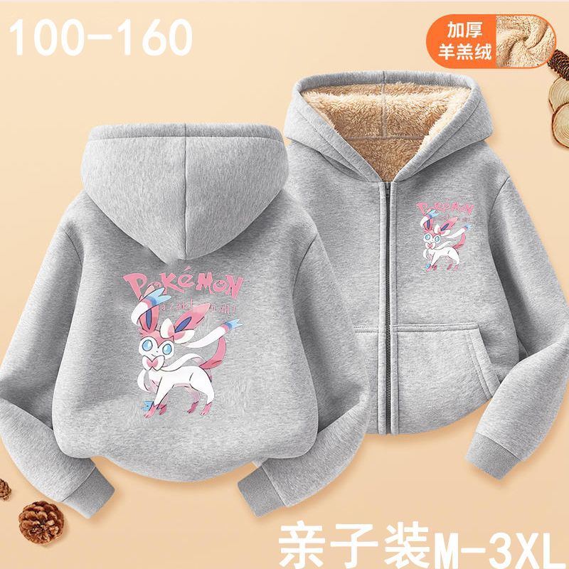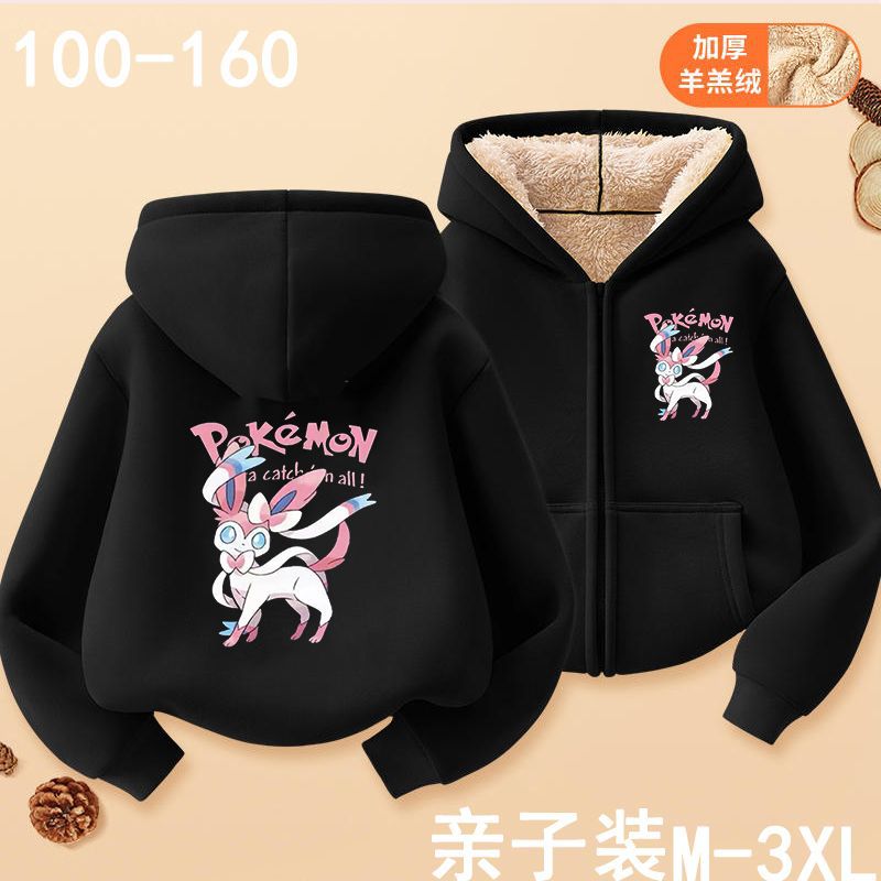 포켓몬 어머니-딸 부모-자녀 옷 가을과 겨울 루칼리아 소녀 지퍼 스웨터 카디건 후드 재킷 기모스토어 가기