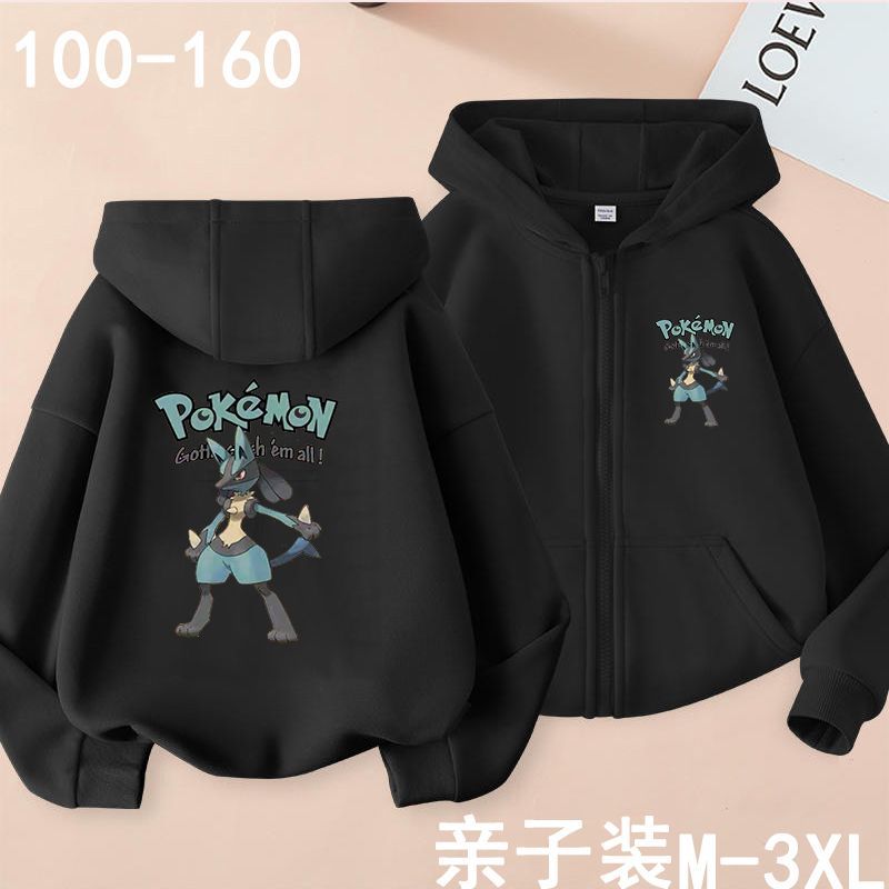 포켓몬 어머니-딸 부모-자녀 옷 가을과 겨울 루칼리아 소녀 지퍼 스웨터 카디건 후드 재킷 기모