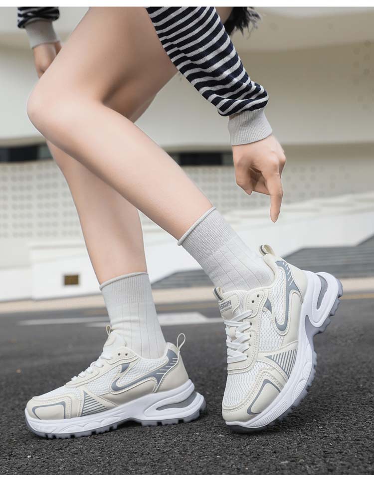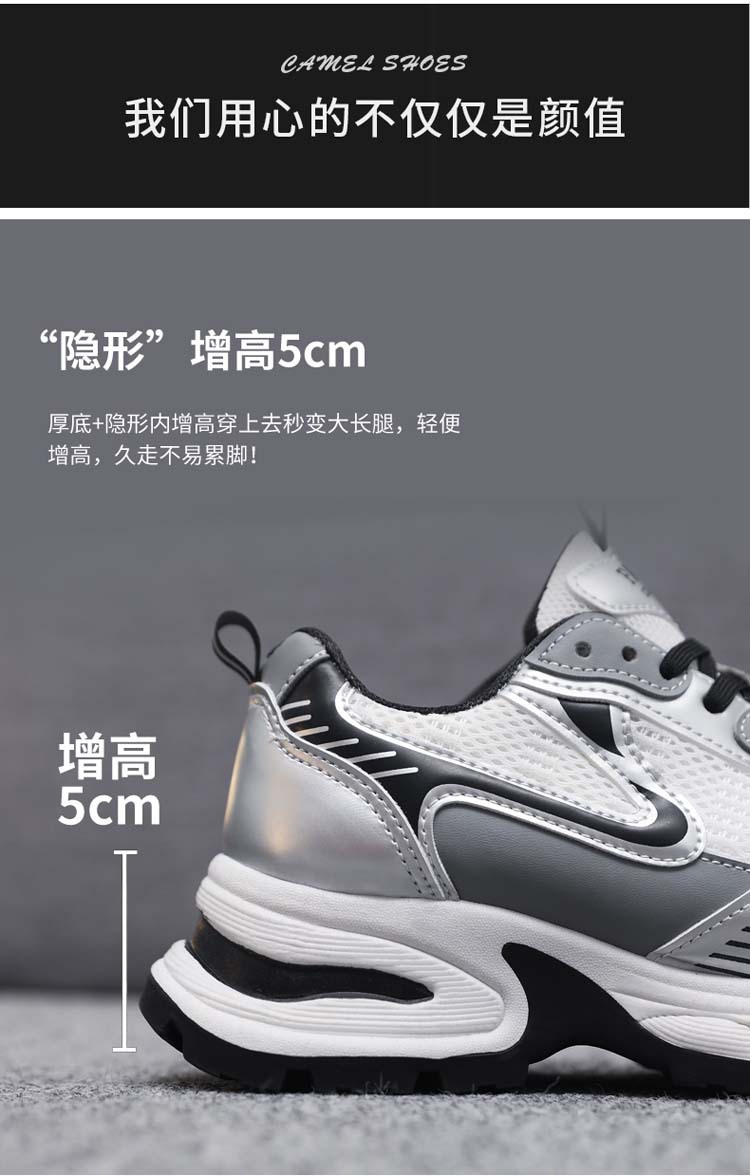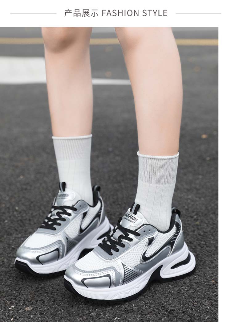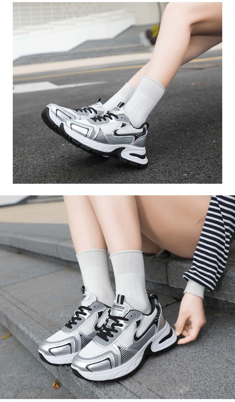 Xinghe 두꺼운 밑창 2024 실버 Torre 신발 여성의 새로운 올 매치 증가 통기성 캐주얼 운동화스토어 가기