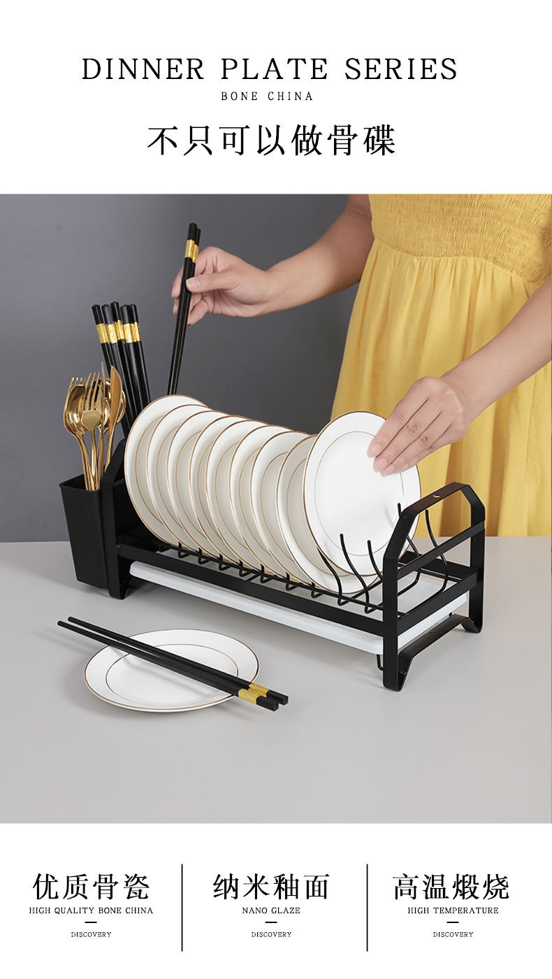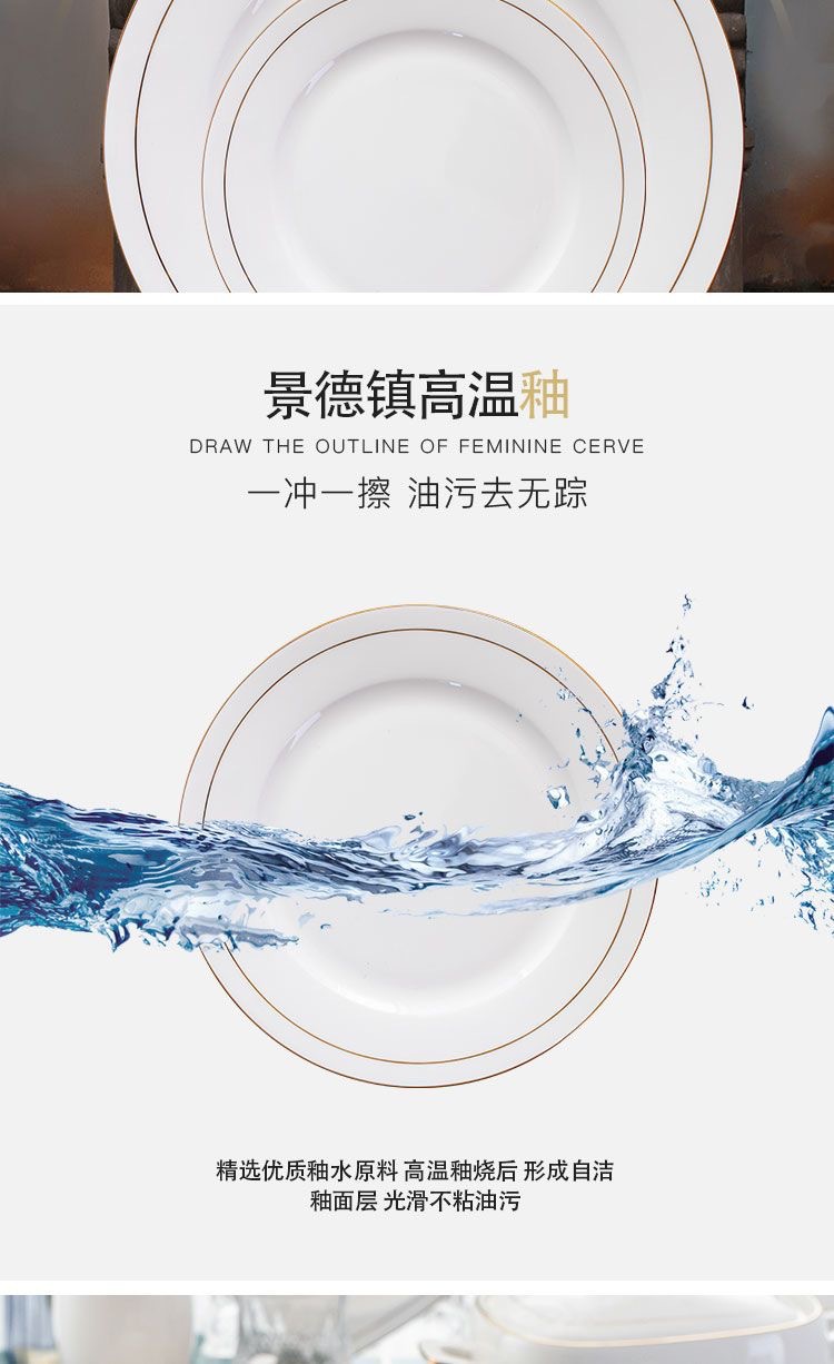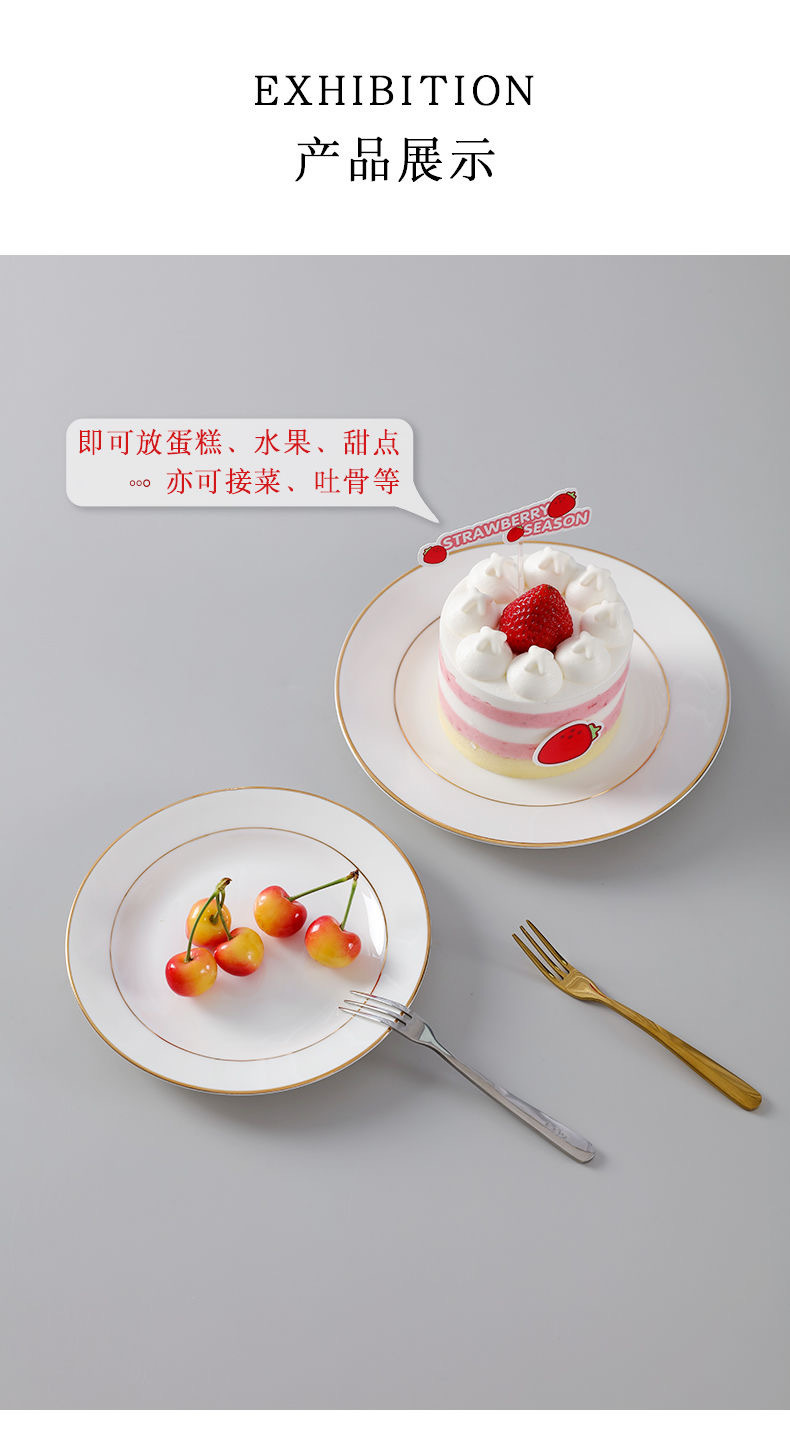 경덕진 본차이나 금테 접시 가정용 접시 접시 세라믹 식기 서양 음식 접시 차가운 접시 접시 과일 접시