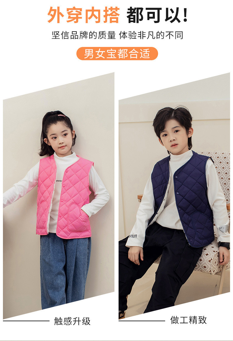 가을과 겨울 새로운 기모 어린이 조끼 따뜻한 퀼트 소녀 소년 중 큰 어린이 면화 조끼 서양식 조끼스토어 가기