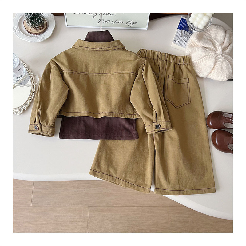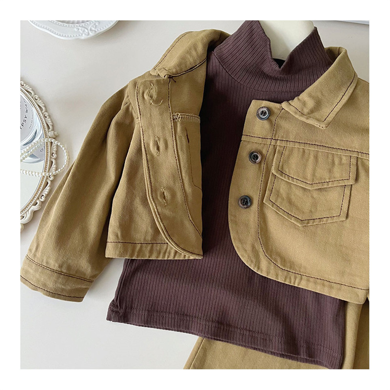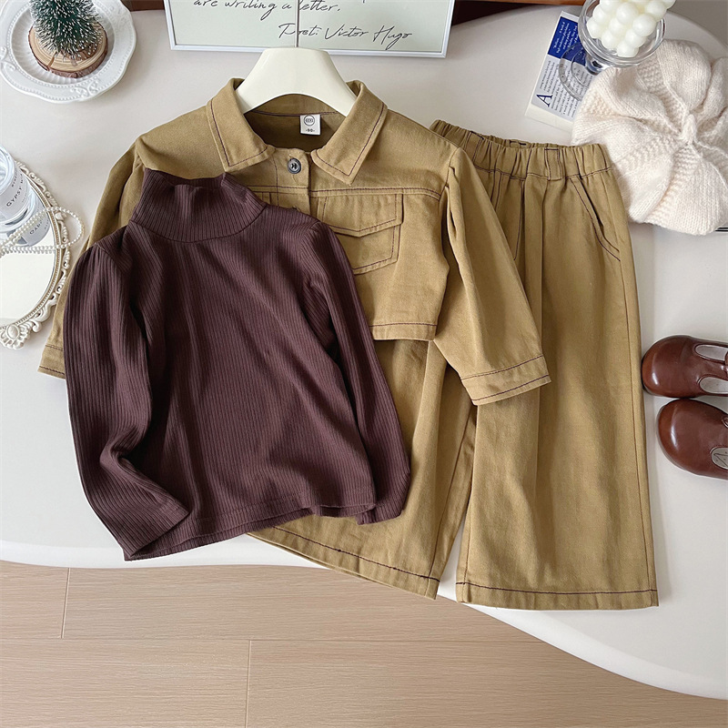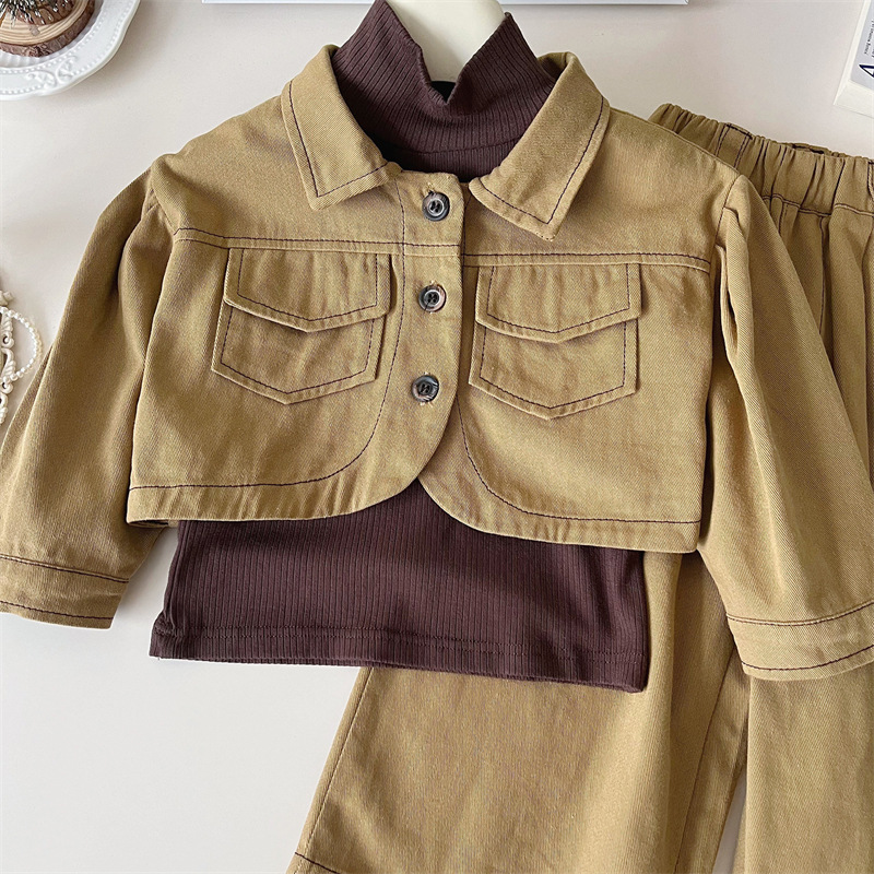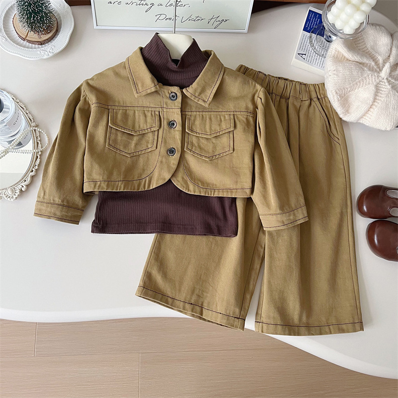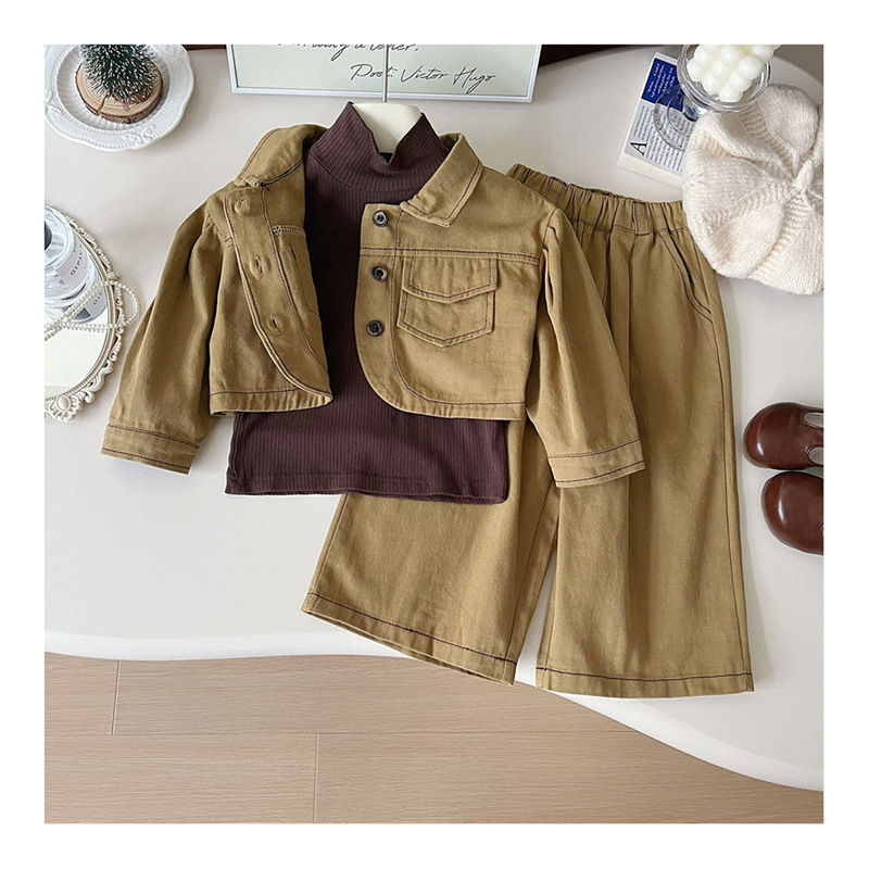 소녀의 세련된 봄과 가을 세트 2024 새로운 가을 원피스 어린 소녀를위한 중소 어린이 3 종 세트 세련된 재킷