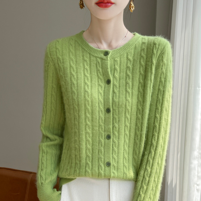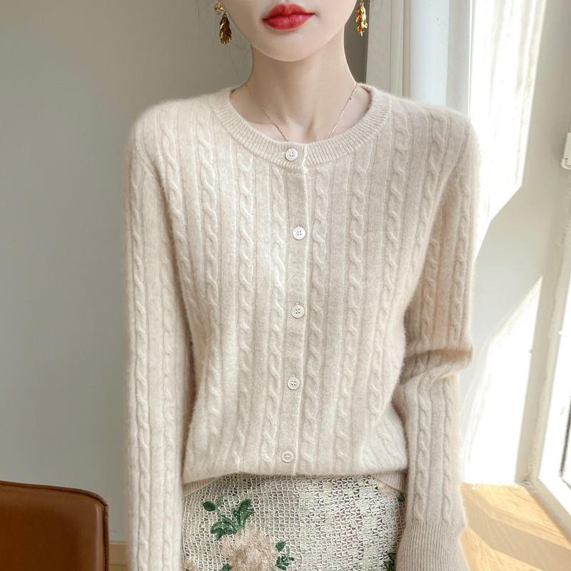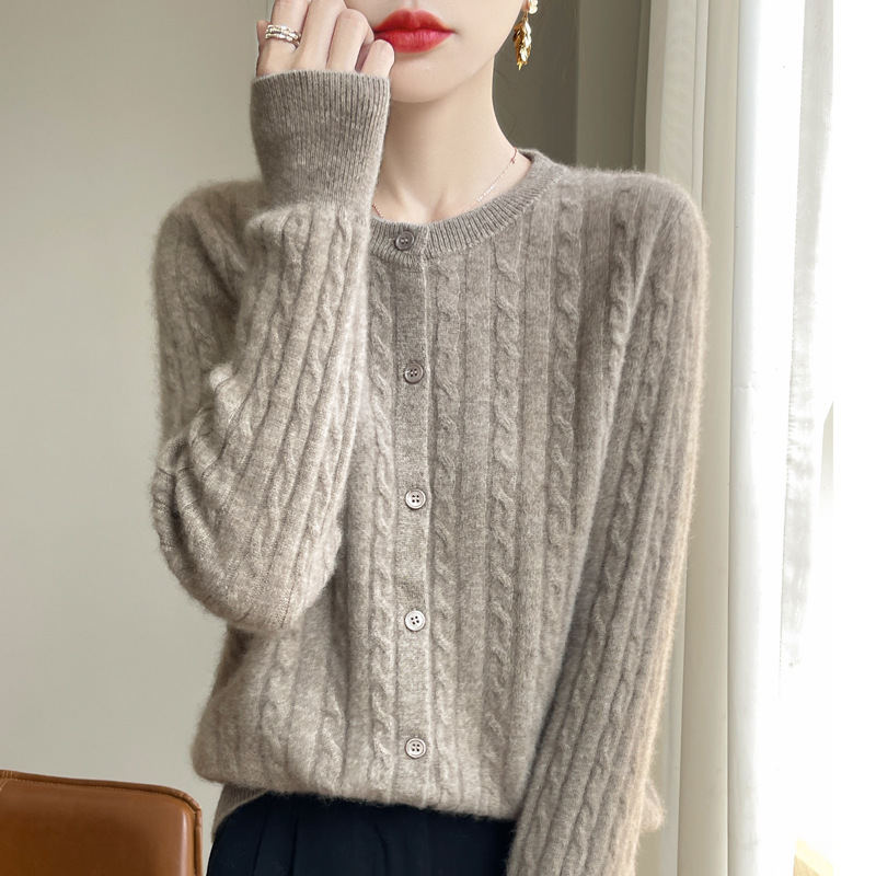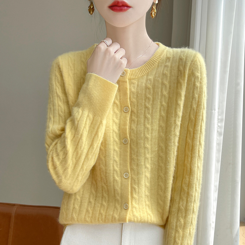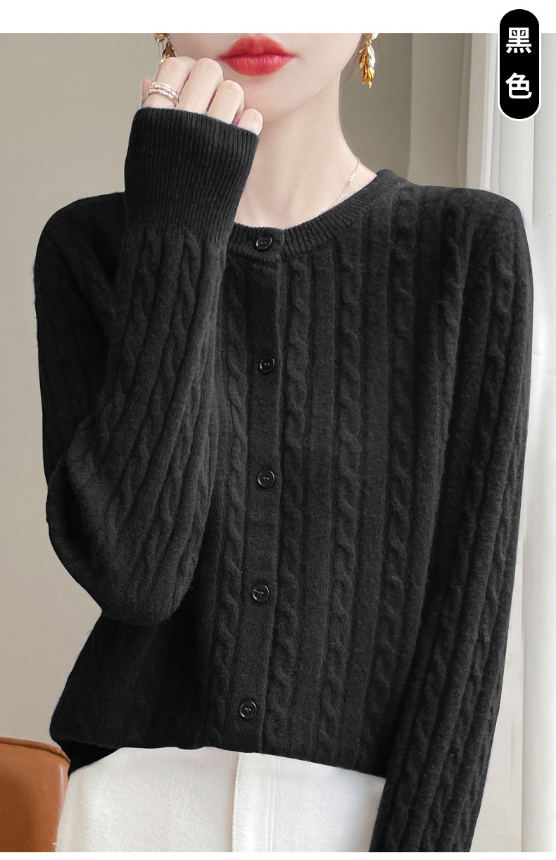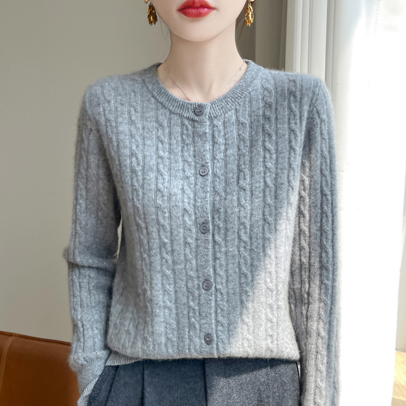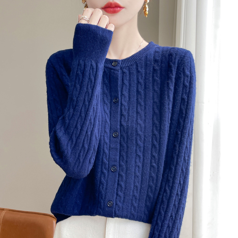 네이비 트위스트 니트 스웨터 코트 짧은 카디건 탑 여성 라운드 넥 가을 및 겨울 새로운 여성 의류