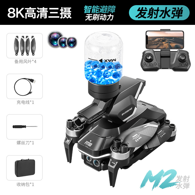 M2 물폭탄 버전 브러시리스 모터 드론 HD 항공 사진 접이식 쿼드콥터 광학 흐름 장애물 회피 원격 제어 항공기