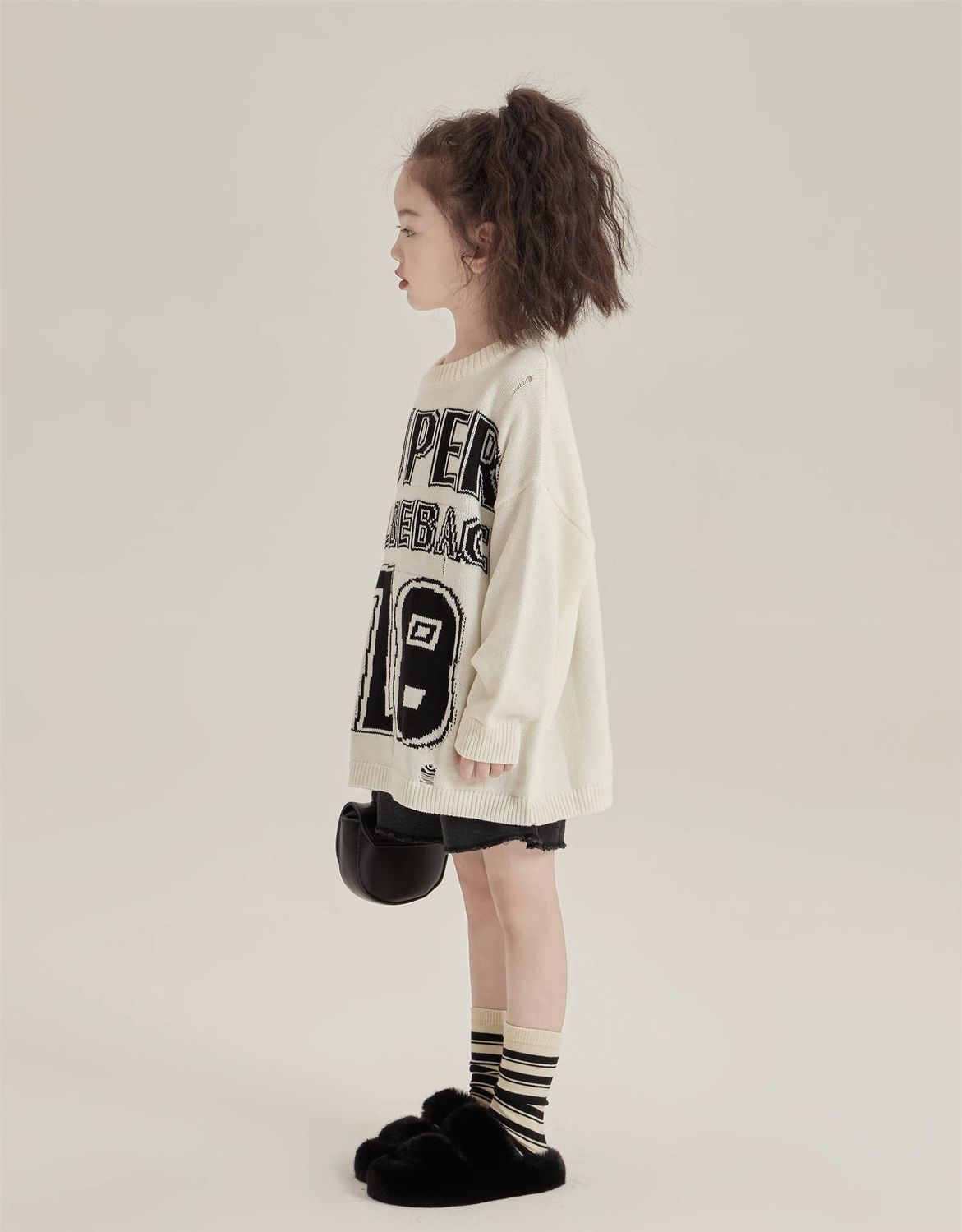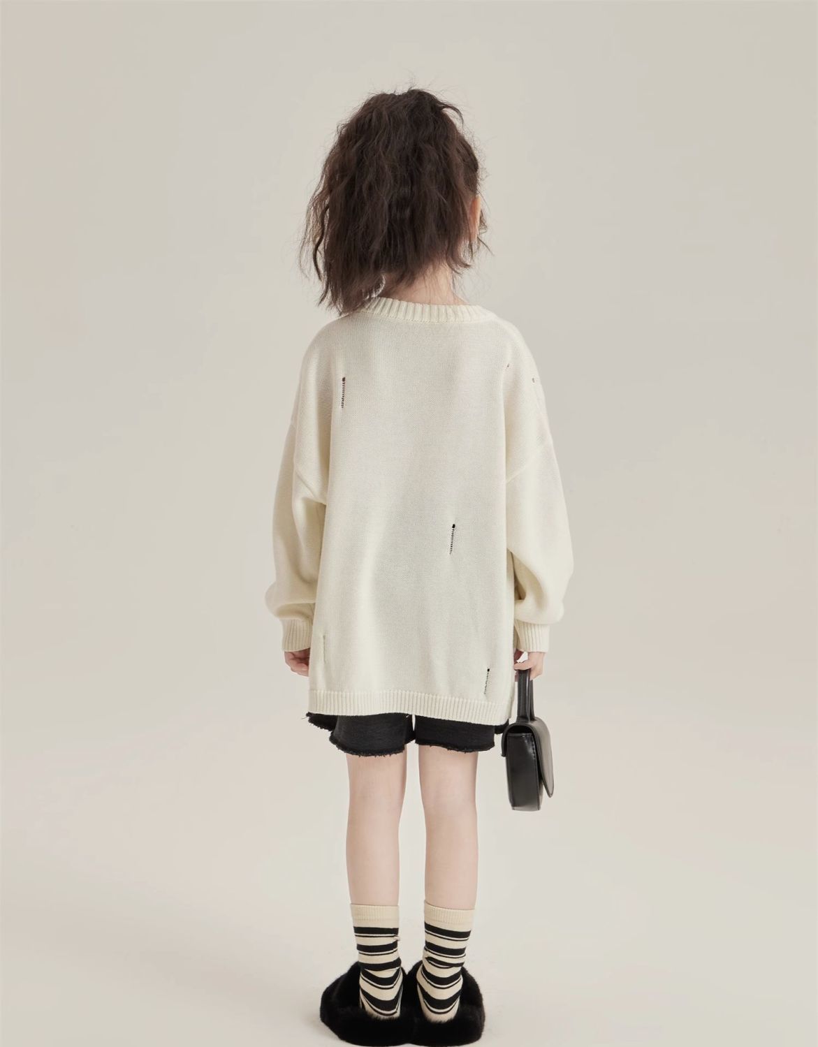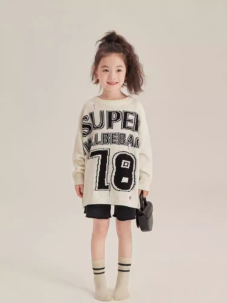 반품/교환 불가, 정가 41, 여아용 풀오버 스웨터, 겨울 스타일리쉬 아동용 다용도 루즈핏 데미지 니트 스웨터