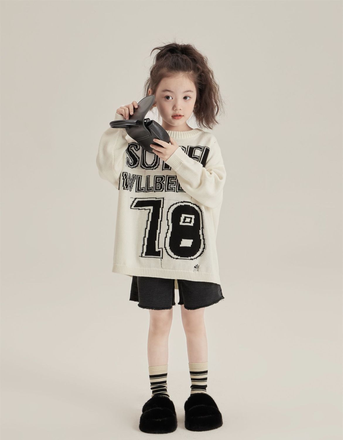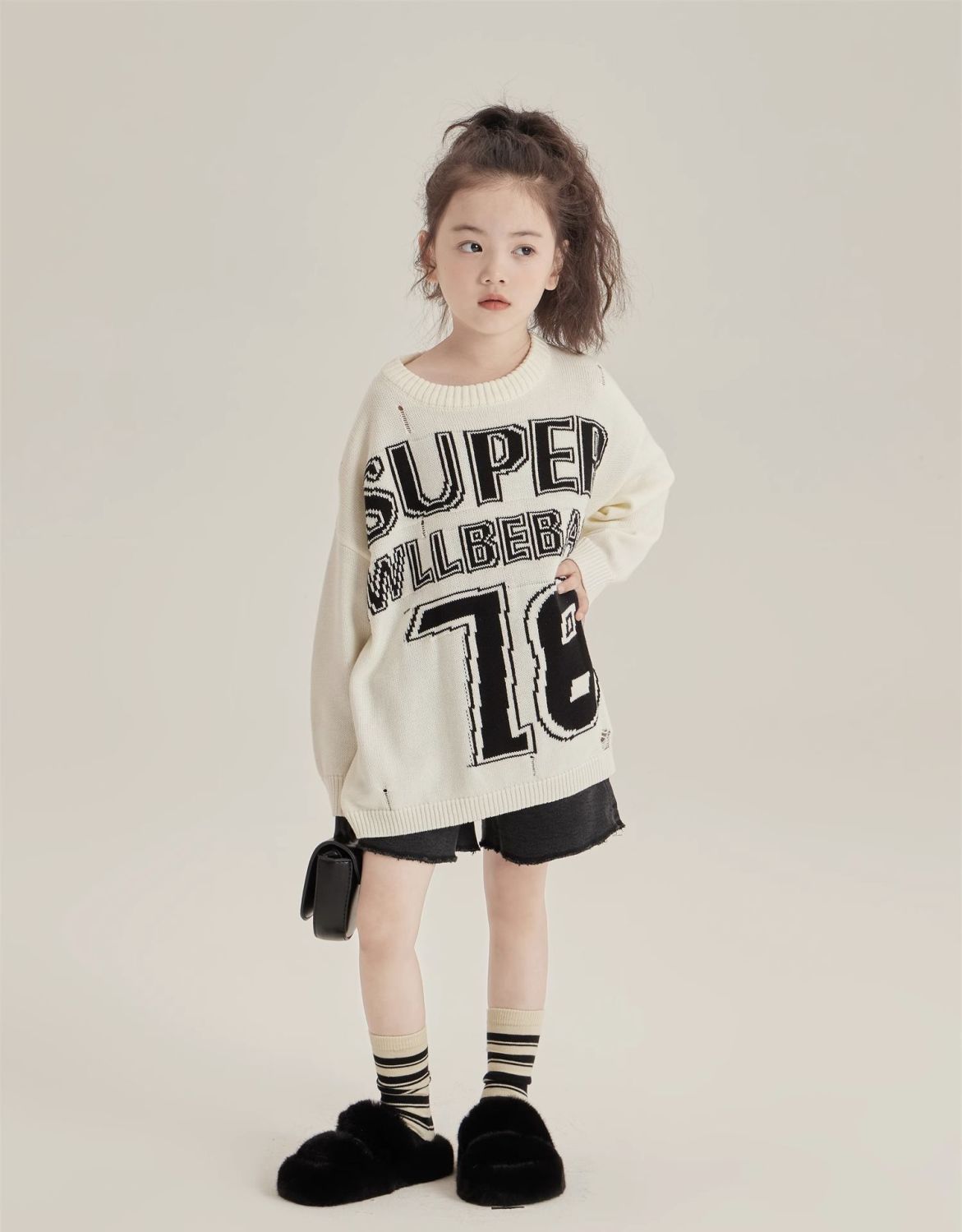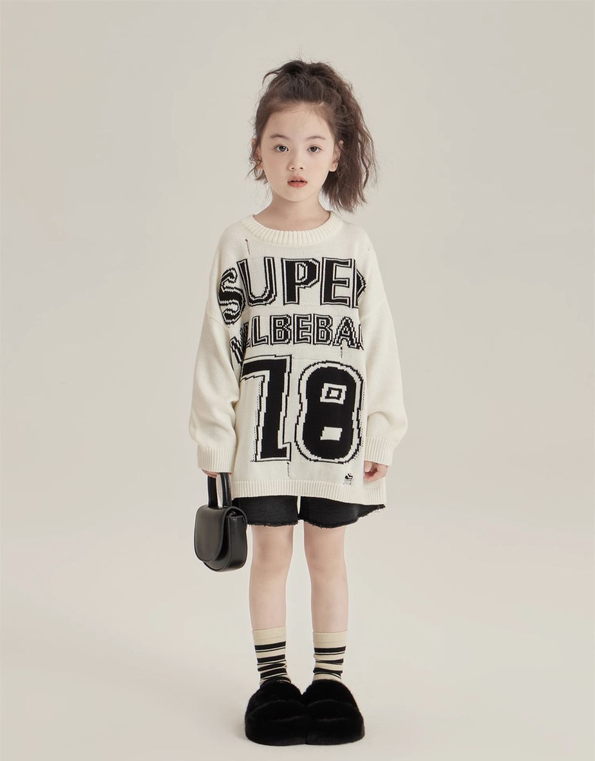 반품/교환 불가, 정가 41, 여아용 풀오버 스웨터, 겨울 스타일리쉬 아동용 다용도 루즈핏 데미지 니트 스웨터