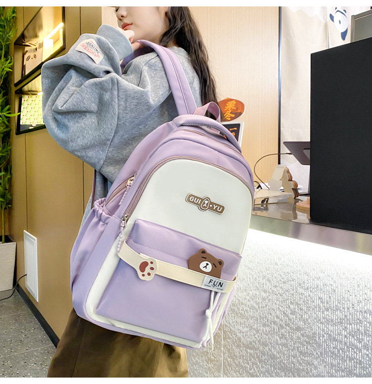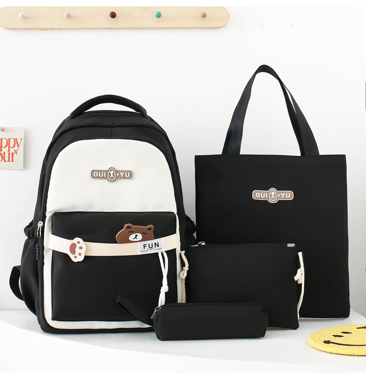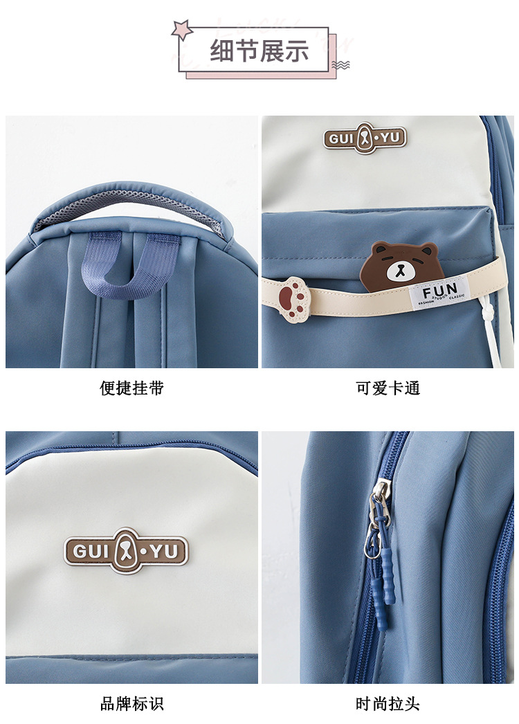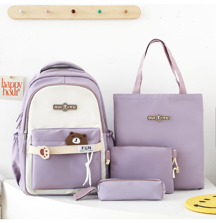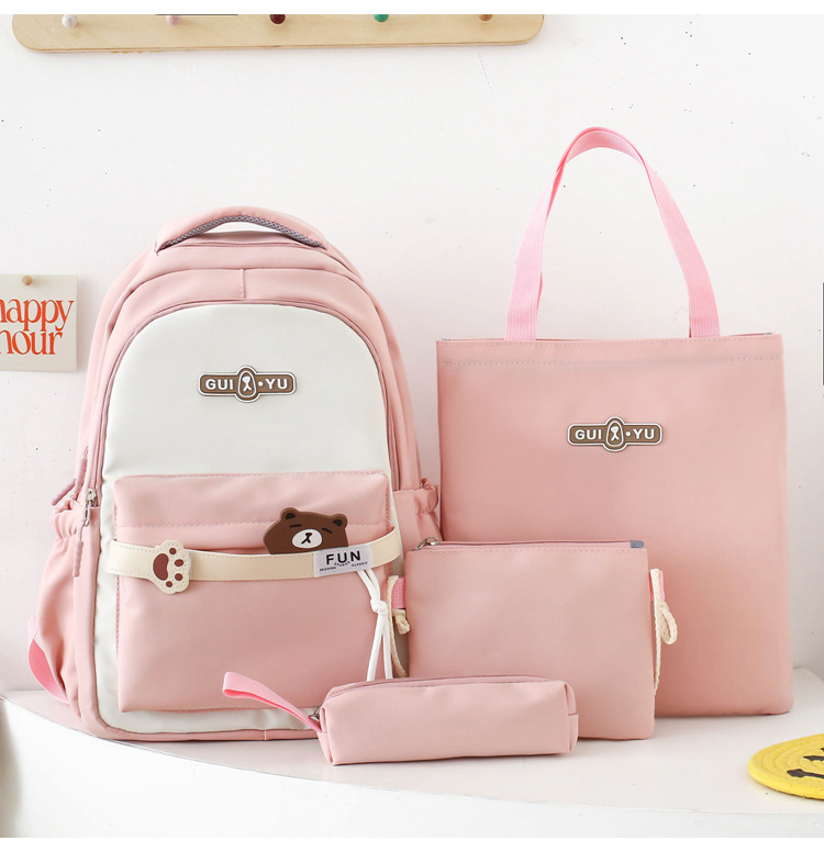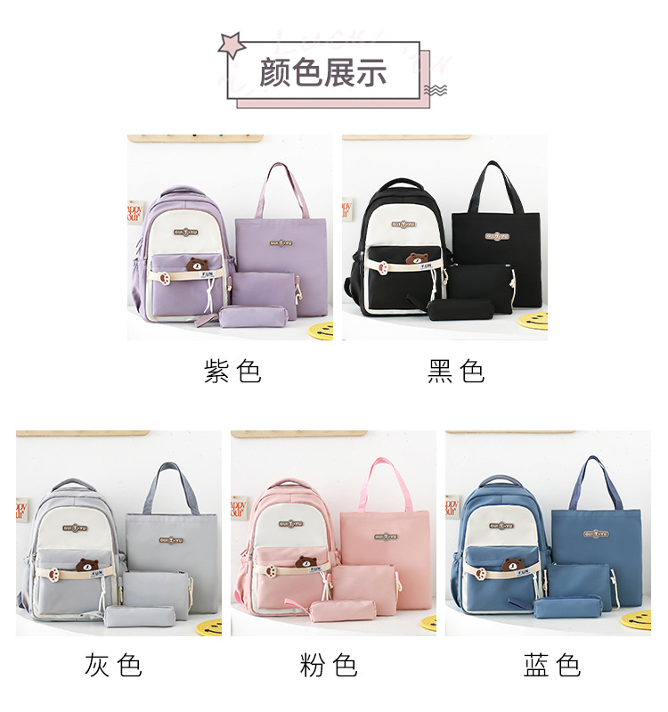 신형 4 종 스쿨백 여성 한식 고용량 초중고 학생용 신형 신선 컬러 콘트라스트 패셔너블 백팩
