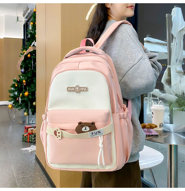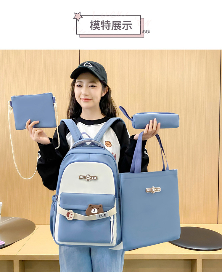 신형 4 종 스쿨백 여성 한식 고용량 초중고 학생용 신형 신선 컬러 콘트라스트 패셔너블 백팩스토어 가기