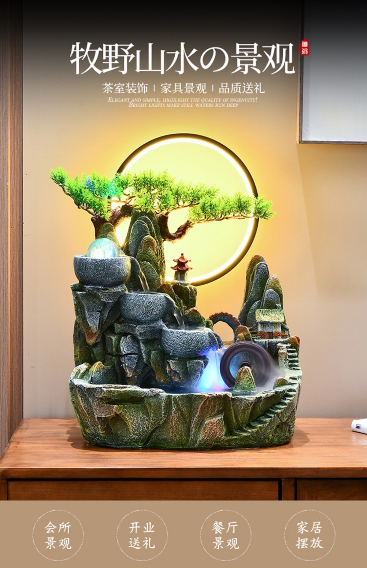실내 바위 분재 장식품 사무실 데스크탑 높은 풍경 자동차 흐르는 물 풍수 바퀴 순환 부의 자동 공