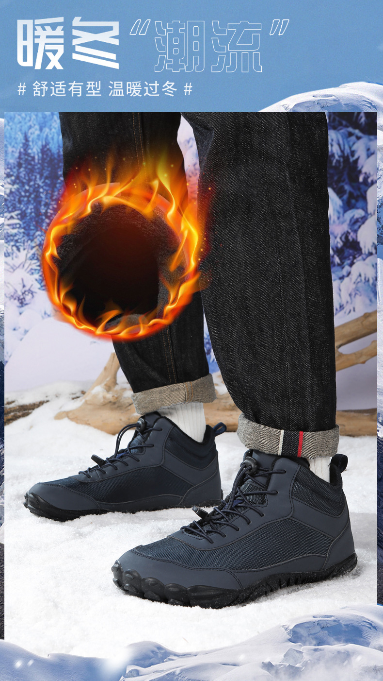 가을과 겨울 새로운 5 손가락 코튼 신발 남성 스노우 부츠 기모 두꺼운 따뜻한 커플의 코튼 부츠 하이킹 남성 신발 통기성