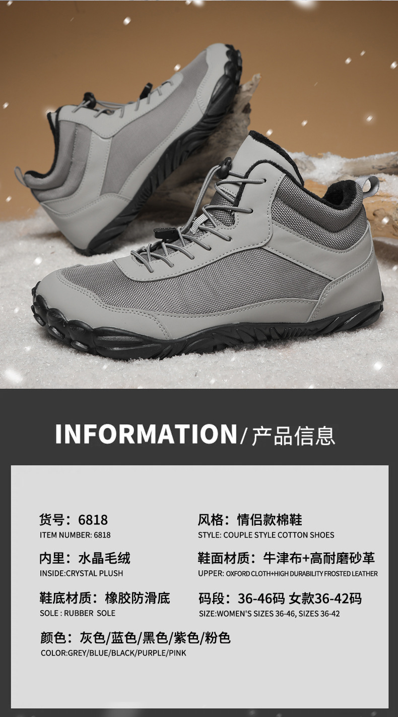 가을과 겨울 새로운 5 손가락 코튼 신발 남성 스노우 부츠 기모 두꺼운 따뜻한 커플의 코튼 부츠 하이킹 남성 신발 통기성스토어 가기
