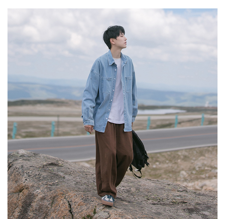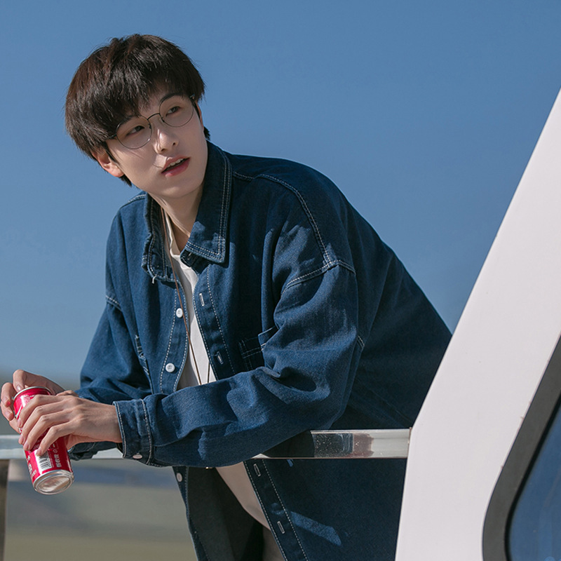아메리칸 스타일 레트로 데님 셔츠 남성 봄과 가을 Ins 하이 스트리트 트렌디 브랜드 긴팔 셔츠 루즈 캐주얼 유피 핸섬 재킷스토어 가기