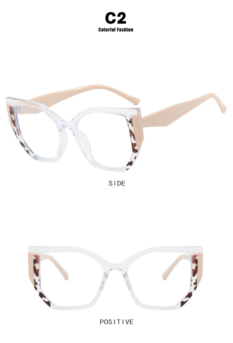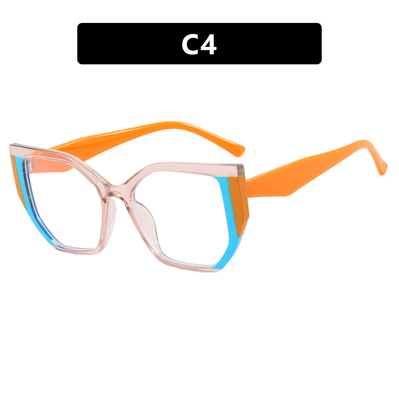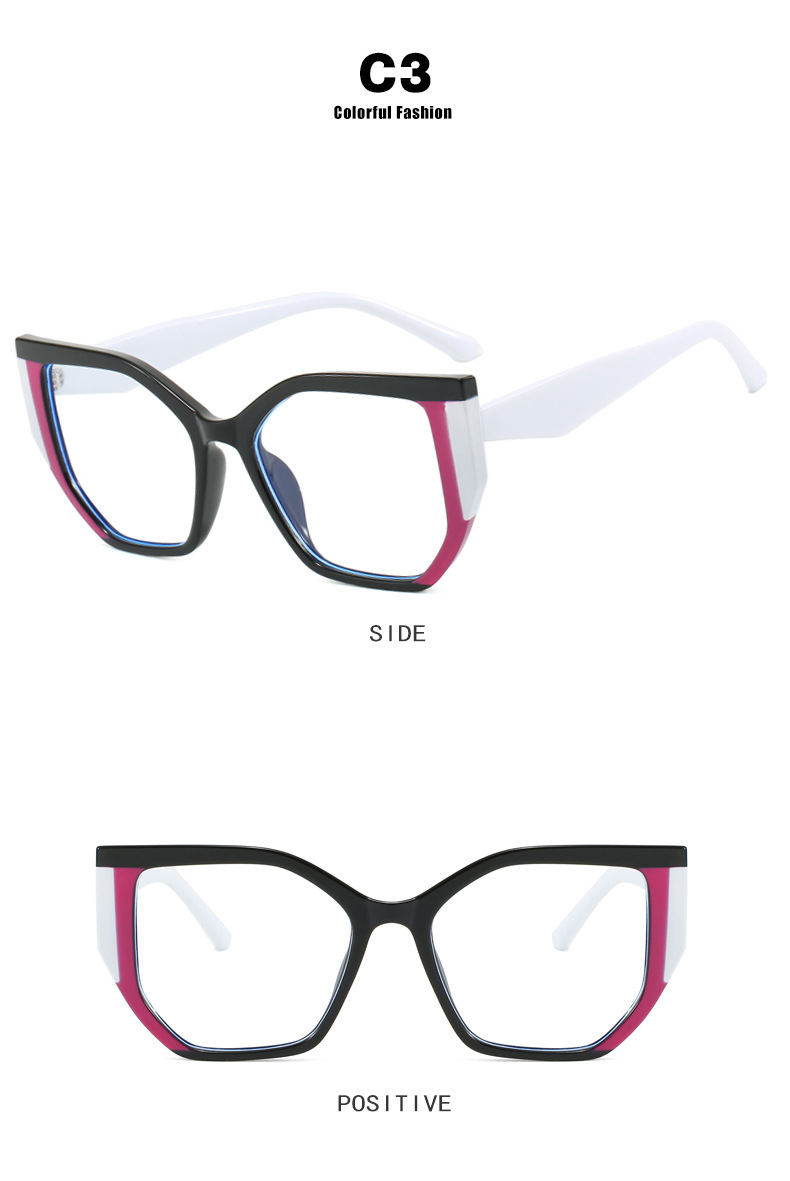 대조 컬러 스티칭 고양이 눈 평면 거울 TR90 안티 블루 라이트 안경 프레임 2024 새로운 패션 빅 프레임 안경 프레임 트렌드스토어 가기