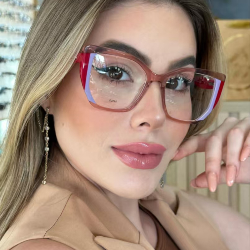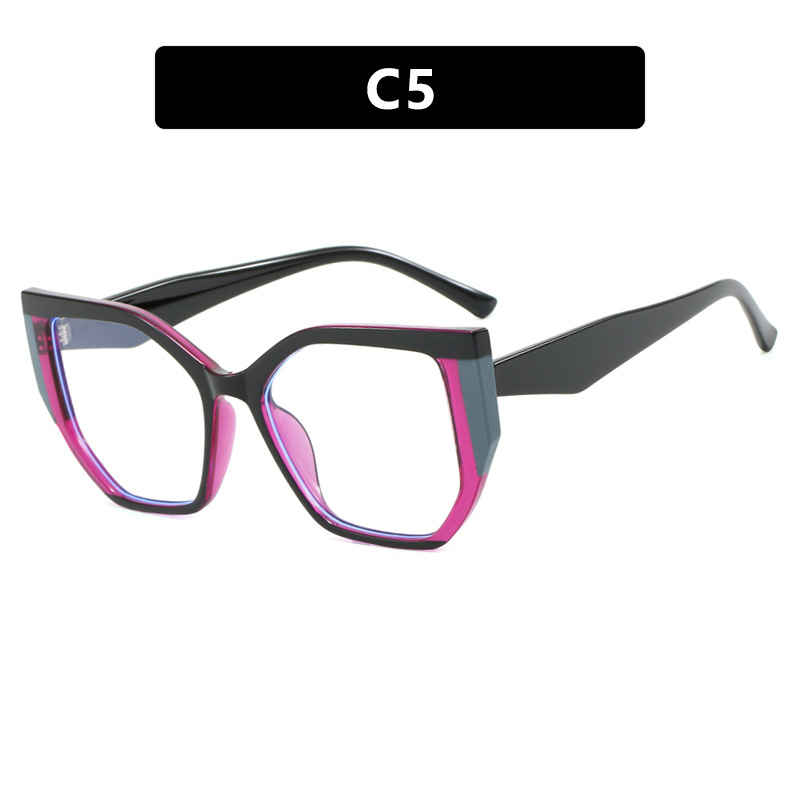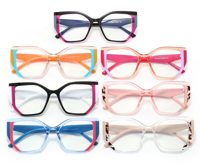 대조 컬러 스티칭 고양이 눈 평면 거울 TR90 안티 블루 라이트 안경 프레임 2024 새로운 패션 빅 프레임 안경 프레임 트렌드