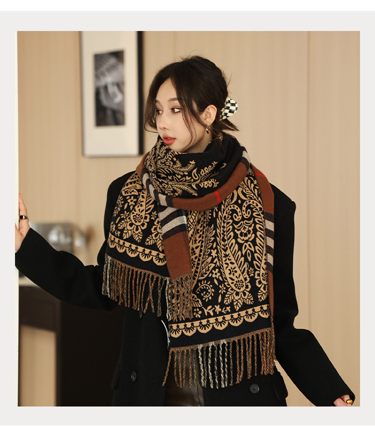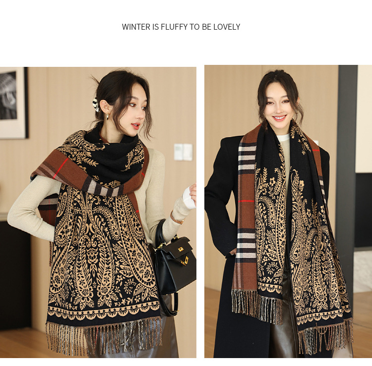 빈티지 체크 무늬 양면 캐시미어 스카프 여성의 2024 년 새로운 Maillard Cashew 겨울 따뜻한 목도리 스카프