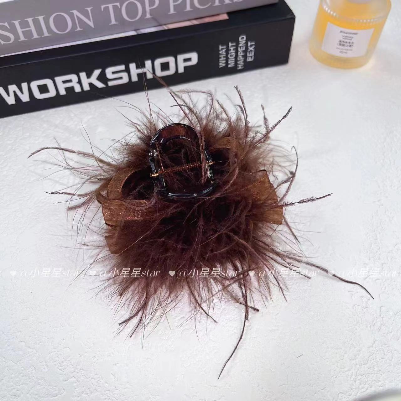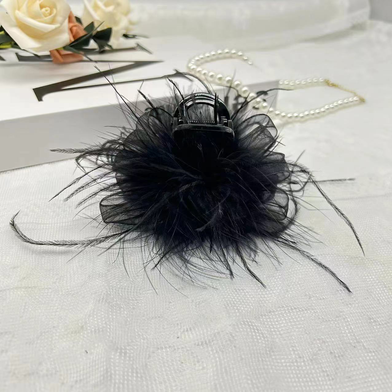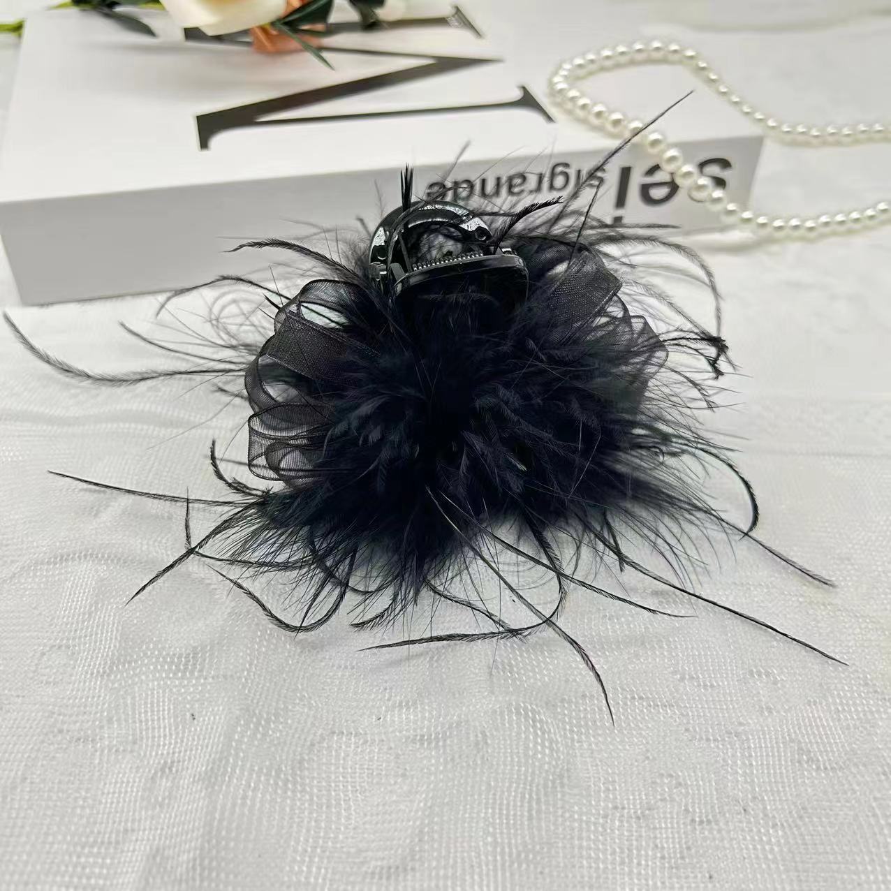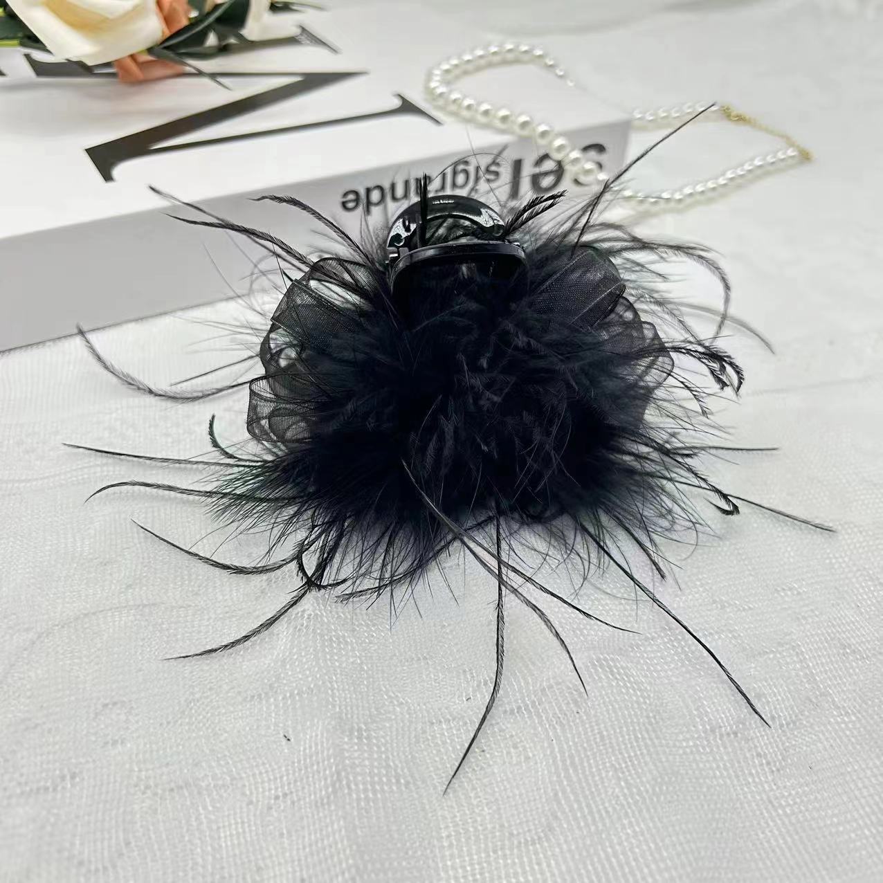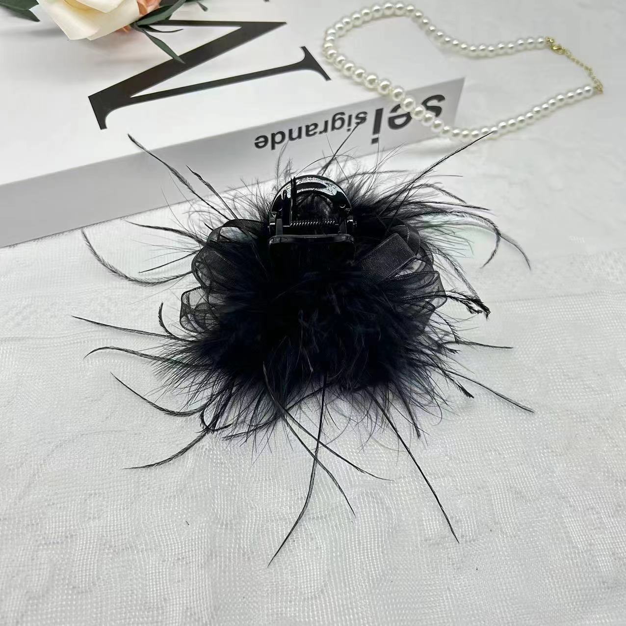 [꿈] 로맨틱 블랙 깃털 8cm 상어 머리핀 클립 패션 헤어 액세서리