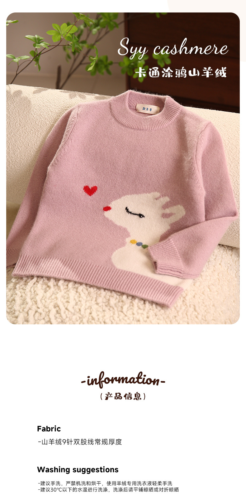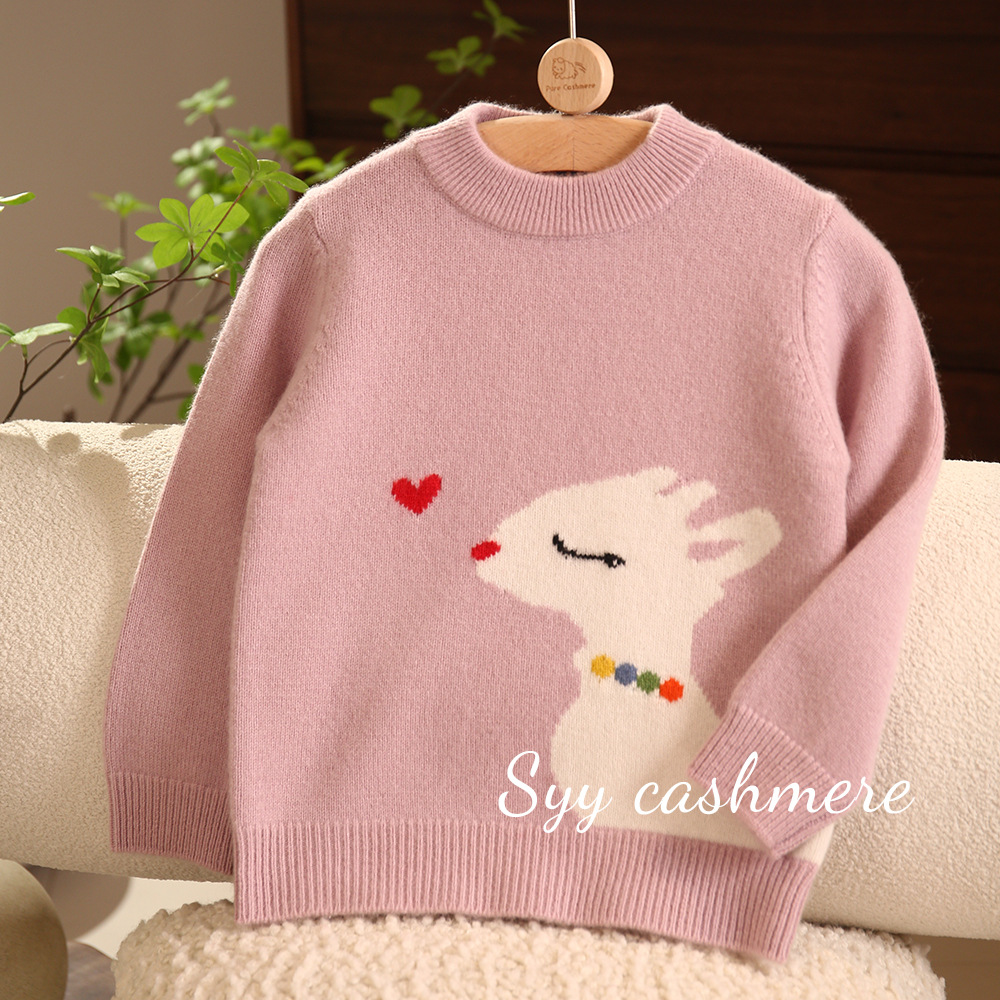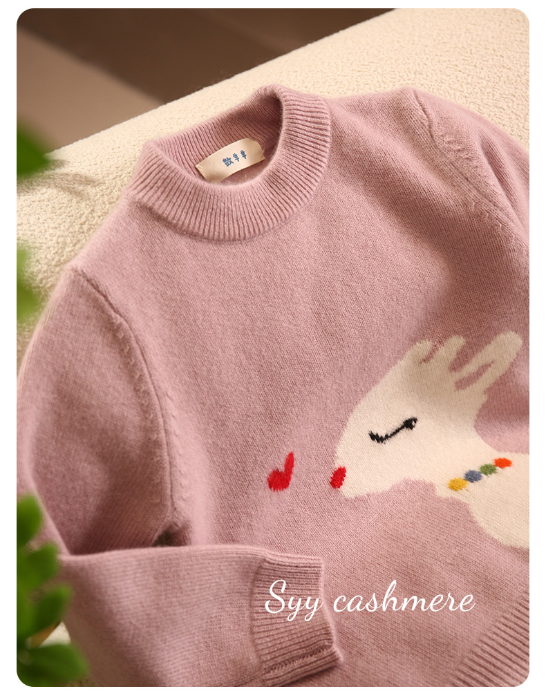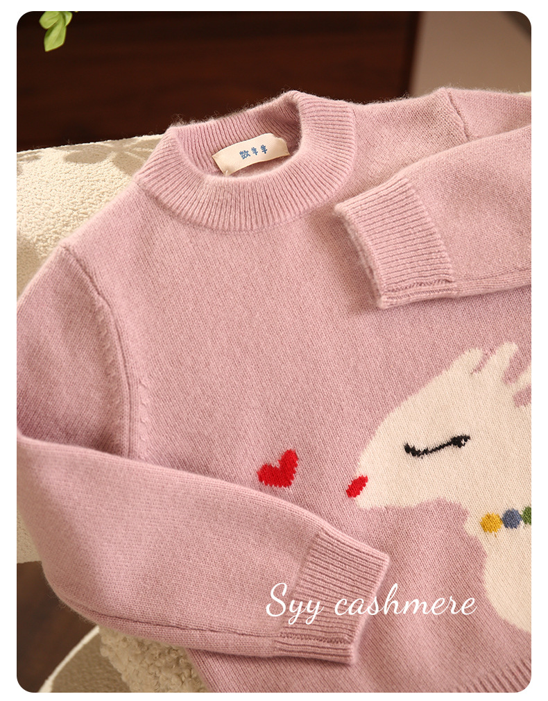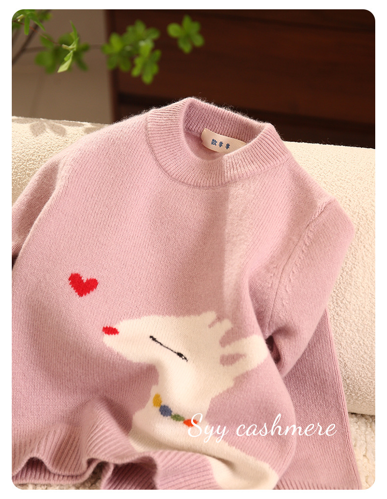 양과 양의 수 핑크 사랑 사슴 만화 자카드 칼라 더블 두꺼운 가을과 겨울 소녀 캐시미어 스웨터스토어 가기