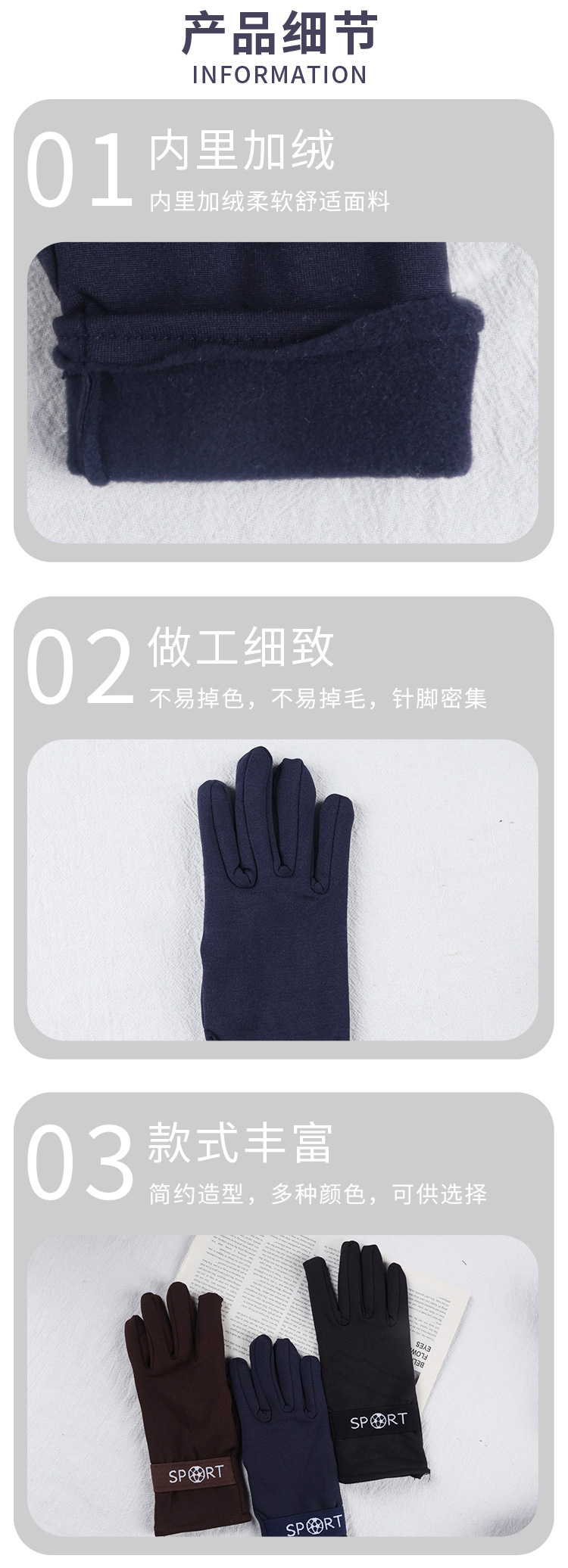 남성용 따뜻한 감기 장갑 봄 가을과 겨울 얇은 벨벳 편안한 라이딩 및 운전 내마모성 기모 따뜻한 손가락 장갑스토어 가기